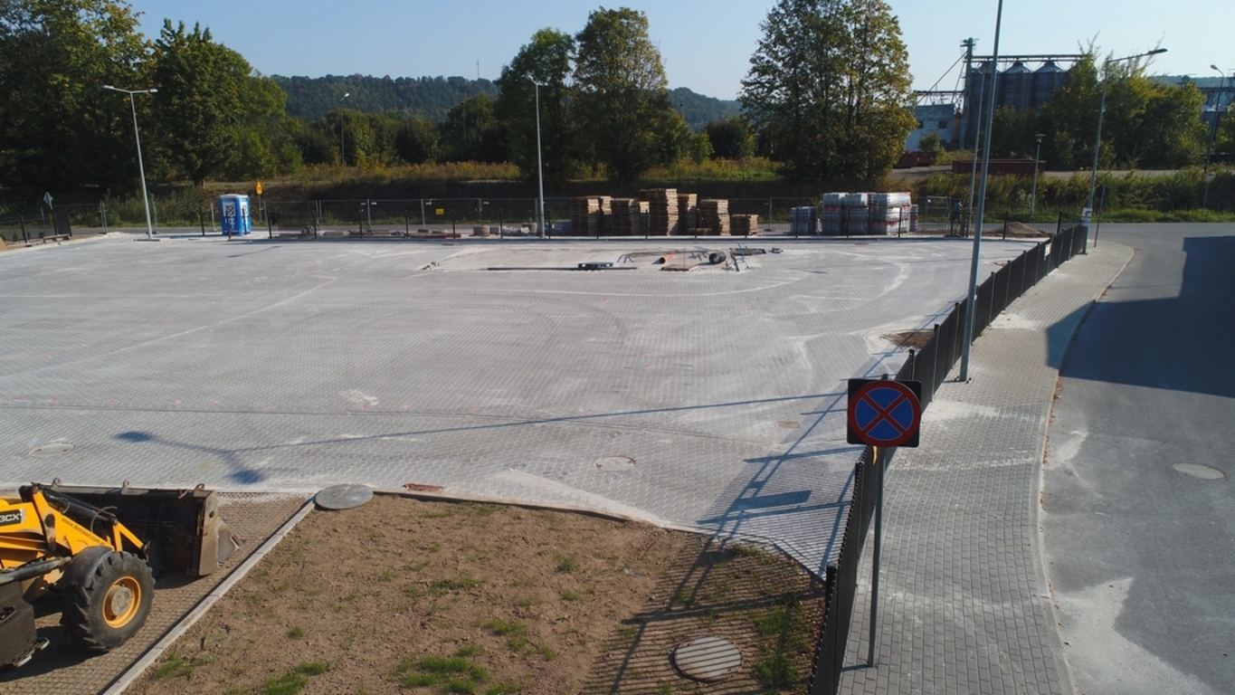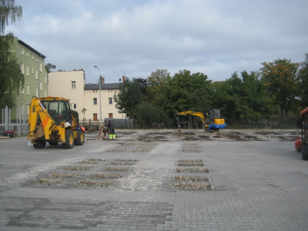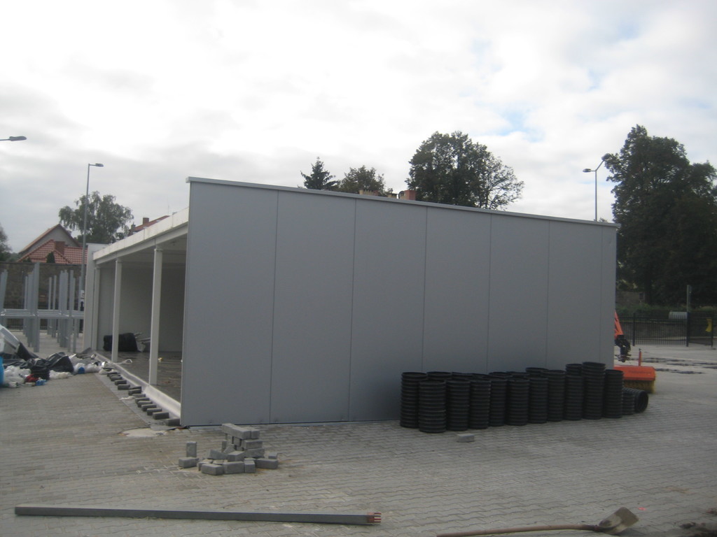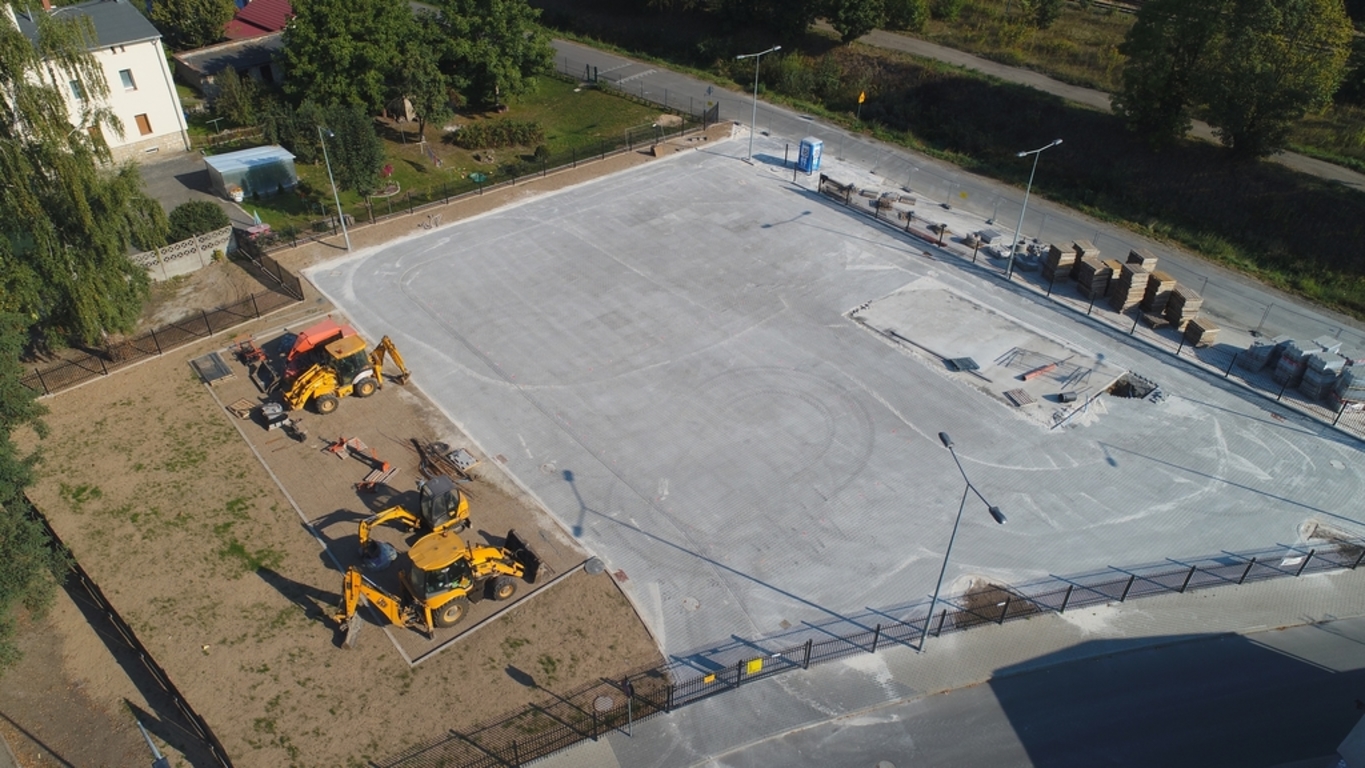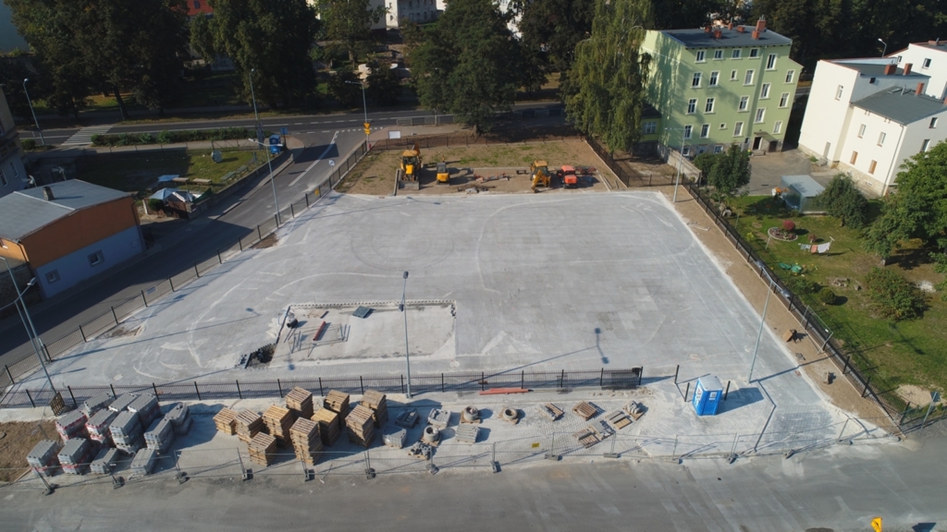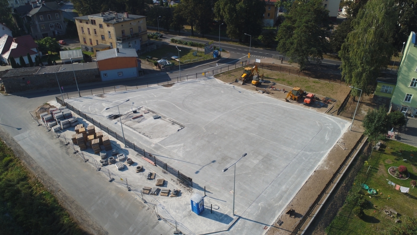 Zakres robót obejmuje rozbiórkę budynku gospodarczego i budynku toalety publicznej oraz wiat, wykonanie zasilania targowiska, montaż na fundamentach prefabrykowanych słupów oświetleniowych z wysięgnikami (wys. 8 m) z wysięgnikami 1-ramiennymi i 2-ramiennymi, montaż opraw oświetleniowych, wykonanie przyłączy wodociągowych i kanalizacji sanitarnej, dostawę i montaż gotowego pawilonu handlowego (80m2) z PCW wraz z toaletą ogólnodostępną oraz wiaty zadaszone o konstrukcji stalowej wraz z blatami w ilości 40 sztuk, miejsca do handlu z samochodów, nawierzchnia z kostki betonowej wraz z chodnikami i miejscami postojowymi, zieleń urządzoną i ogrodzenie terenu.