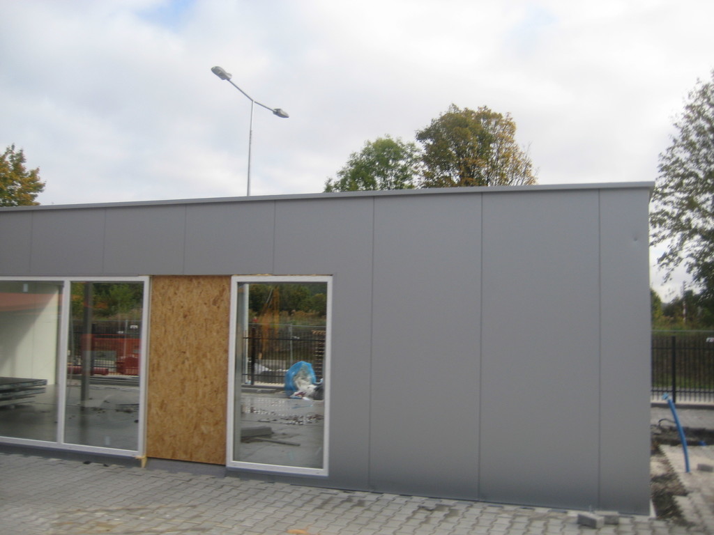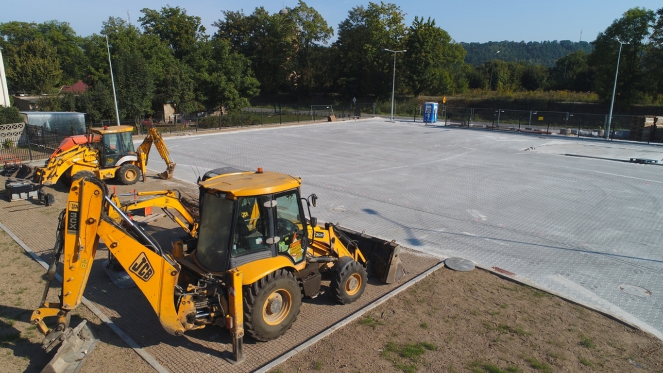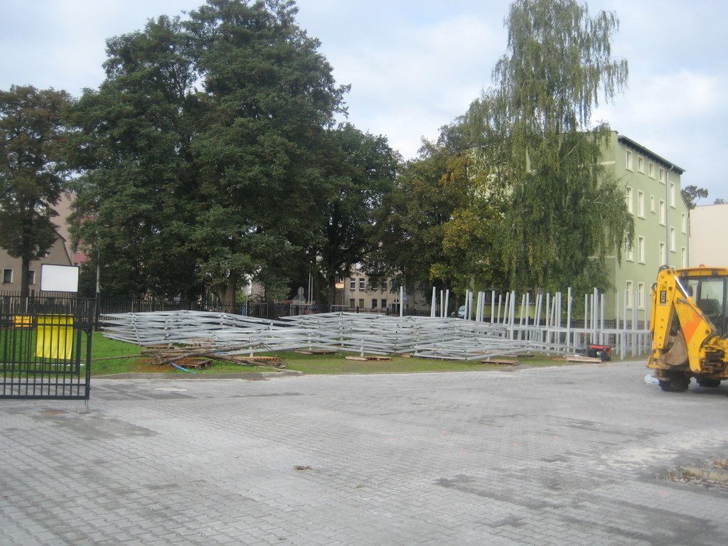 Trwają prace budowlane przy przebudowie Targowiska Miejskiego w Lwówku Śląskim. Obecnie trwa montaż pawilonu handlowego z toaletą i stoisk handlowych. Planowany termin zakończenia budowy to 31październik 2018 r.