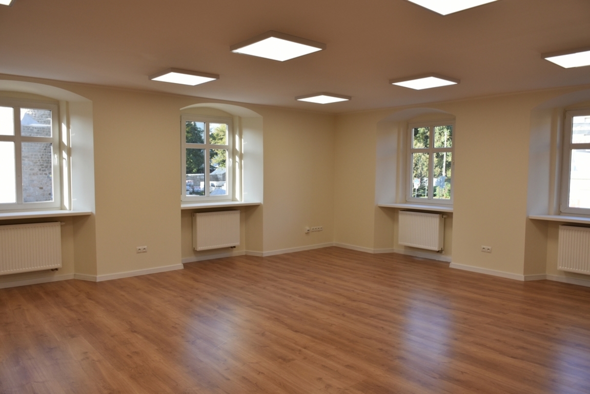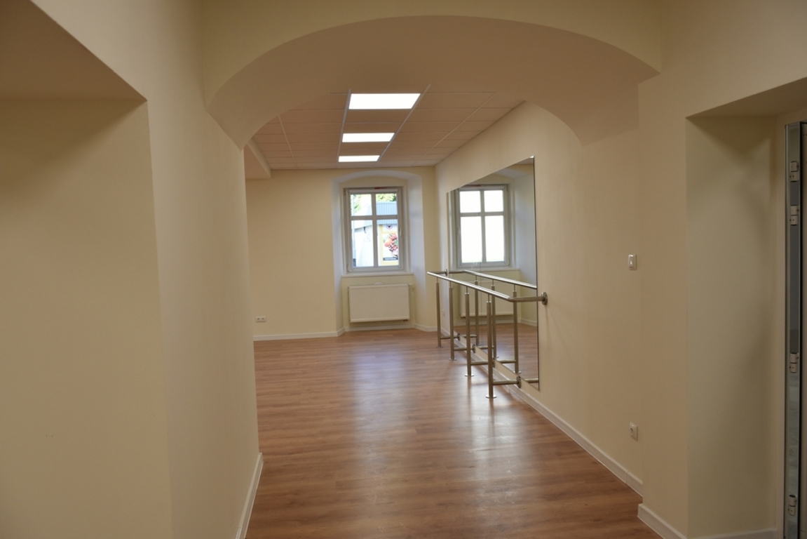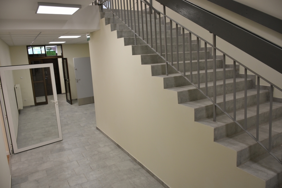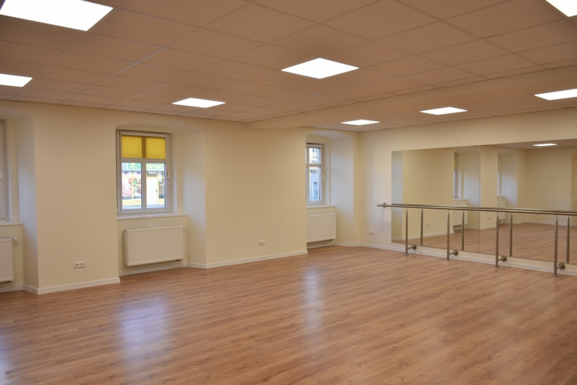 i wewnętrznych, bieżący remont pomieszczeń parteru oraz piętra w zakresie wszystkich branż (instalacji elektrycznej, komputerowej, sanitarnej), wykonanie robót tynkarskich i malarskich we wszystkich pomieszczeniach, wymianę części posadzek, podłóg i płytek ceramicznych na ścianach w pomieszczeniach sanitarnych, wymianę posadzek i podłóg w części pomieszczeń, utworzenie na parterze pomieszczenia sanitarnego, wymianę stolarki drzwiowej oraz konserwacja istniejącej pozostawionej, malowanie elewacji wraz z uzupełnieniem tynków, przebudowę instalacji centralnego ogrzewania, profesjonalne wytłumienie akustyczne ścian pomieszczenia sali prób, podział pomieszczenia na garderobę i archiwum. W trakcie wykonywania robót wykonano także roboty dodatkowe w tym m.in. nowy strop podwieszony na sali tanecznej. Tego typu roboty pojawiają się zwykle przy remoncie zużytych technicznie i funkcjonalnie budynków.