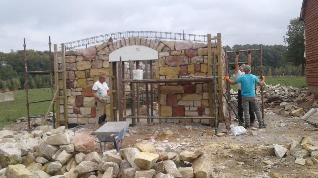 Trwają prace budowlane przy budowie Przystani Izerskiej w Pieszkowie. Zakres robót obejmuje budowę niepodpiwniczonego i parterowego obiektu. Budowa w systemie tradycyjnym z kamienia piaskowca łamanego, niesortowanego na zaprawie cementowej z dachem dwuspadowym krytym dachówką ceramiczną, utwardzenie placu i drogi wewnętrznej o nawierzchni nieulepszonej oraz montaż stojaka na rowery.
