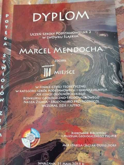 W dwudziestej edycji Ogólnopolskiego Konkursu Geologiczno - Środowiskowego „Nasza Ziemia – środowisko przyrodnicze wczoraj, dziś i jutro” wzięło udział ponad 4700 uczniów z całej Polski. Wśród nich Marcel Mendocha uczeń Szkoły Podstawowej nr 2 we Lwówku Śl.