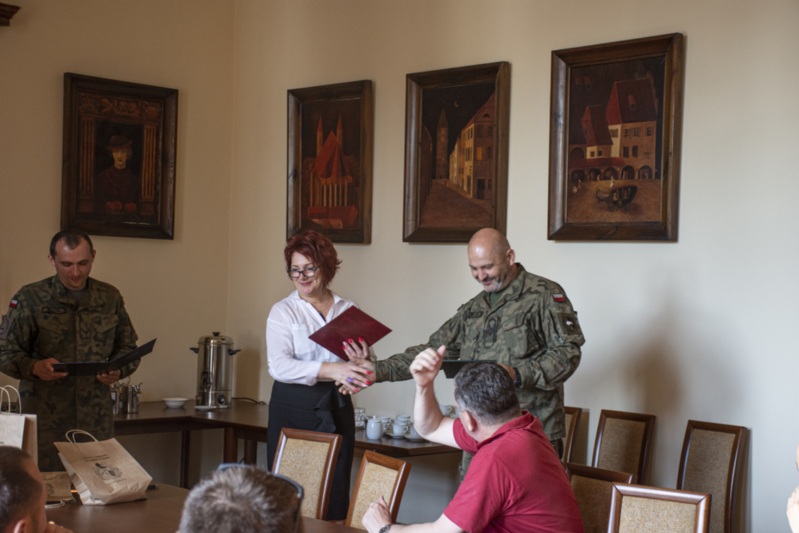 Od kilku dni na terenie gminy Lwówek Śląski miała miejsce akcja saperska zmierzająca do usunięcia niewybuchów znajdujących się w wyrobisku dawnej cegielni w miejscowości Mojesz. W dniu dzisiejszym 14 czerwca 2019 r. saperzy ostatecznie zakończyli prowadzoną akcję. W Urzędzie Gminy i Miasta Lwówek Śląski odbyło się spotkanie podsumowujące, na którym Pani Burmistrz Mariola Szczęsna wręczyła drobne upominki oraz podziękowała za pomyślnie zakończone działania saperom z:
