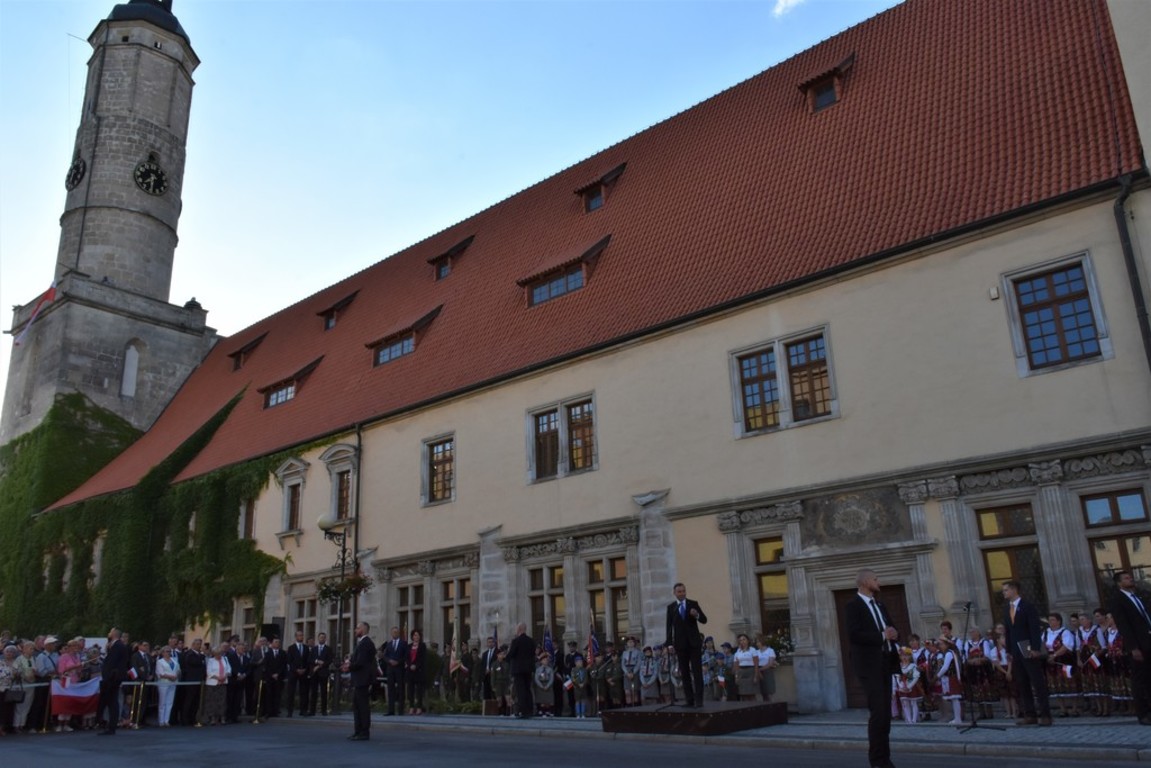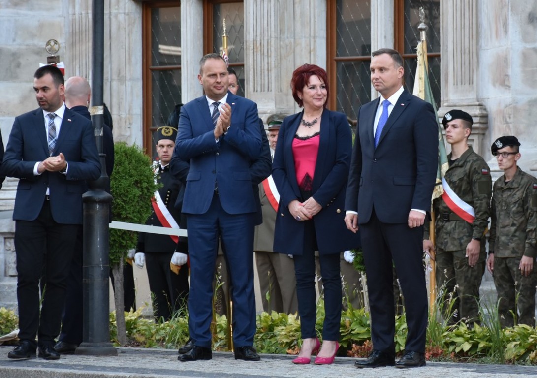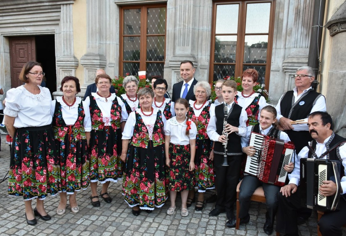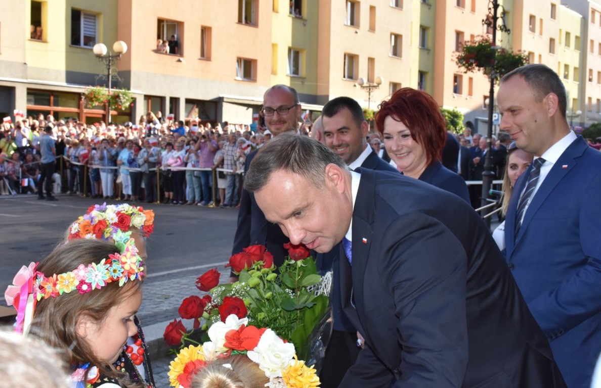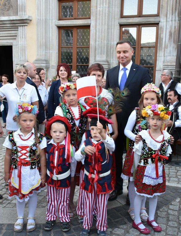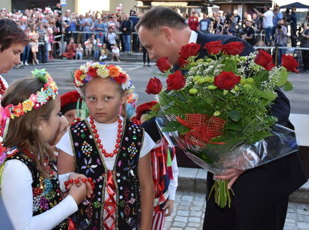 Po opuszczeniu lwóweckiego ratusza, gdzie miało miejsce ważne spotkanie, Pan Prezydent Andrzej Duda przyjął wiązankę kwiatów z rąk dzieci występujących w strojach ludowych, reprezentujących zarówno całą Gminę i Miasto Lwówek Śląski, jak i własne Sołectwo Rakowice Wielkie.