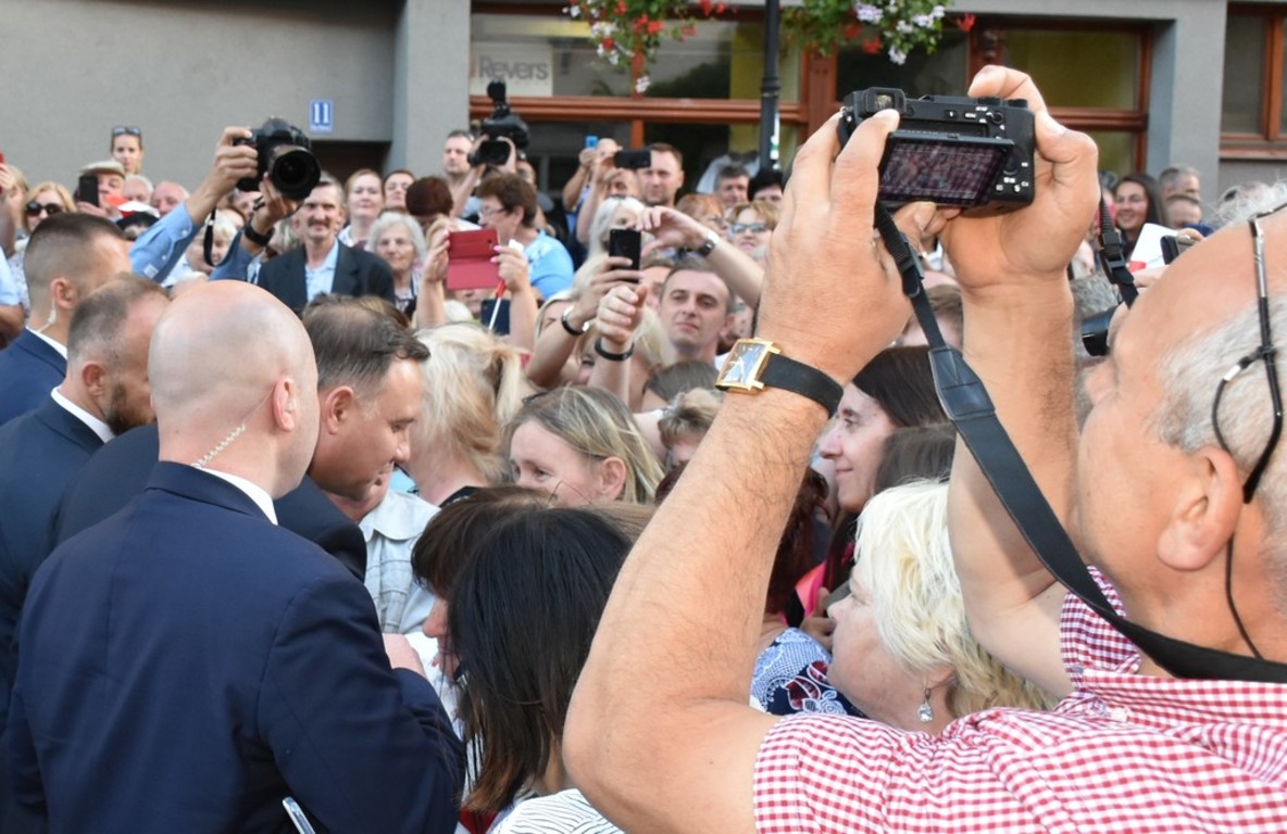 Po półgodzinnym wystąpieniu, Pan Prezydent witał się z dziećmi i mieszkańcami Naszej Gminy oraz robił sobie z nimi pamiątkowe zdjęcia! Chętnie fotografował się z przybyłymi pocztami sztandarowymi reprezentującymi:1. Lwówecki Szczep Harcerski „Topazowy Kamień”, Kopalnię „Nowy Ląd” w Niwnicach, Nadleśnictwo Lwówek Śląski, Zespół Szkół Ekonomiczno-Technicznych im. Kombatantów Ziemi Lwóweckiej w Rakowicach Wielkich, OSP Chmielno, OSP Kotliska, OSP Zbylutów.