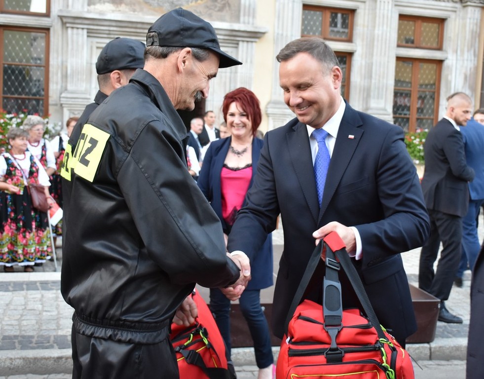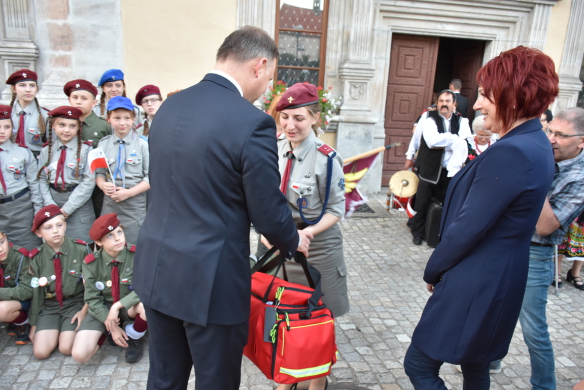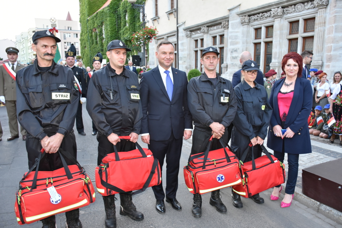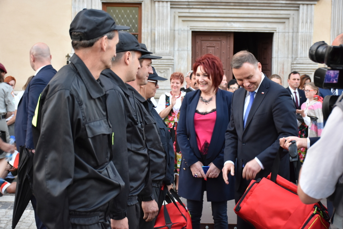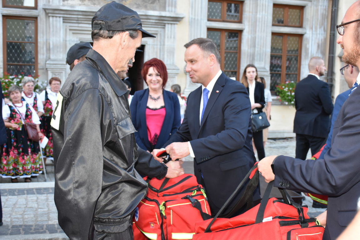 Na koniec spotkania Prezydent RP Pan Andrzej Duda wręczył zestawy ratownicze dla przedstawicieli Ochotniczych Straży Pożarnych z: Chmielna, Kotlisk, Soboty oraz Płóczek Górnych.