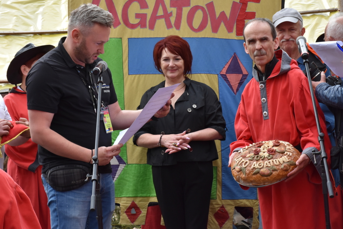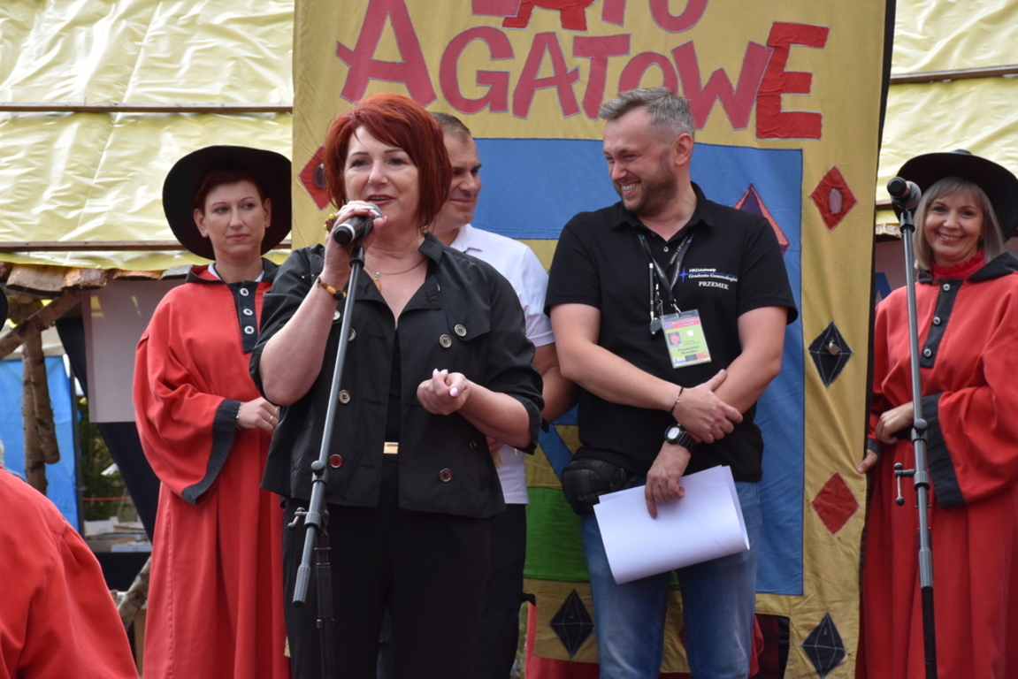 Po godzinie 15.00 na lwóweckim rynku pojawili się Walończycy dzierżący sztandar Lwóweckiego Lata Agatowego oraz pochodnie. Po przemówieniu Sekretarza Roberta Szawłowskiego, na scenie pojawiła się Pani Mariola Szczęsna Burmistrz Gminy i Miasta Lwówek Śląski, oficjalnie otwierając giełdę minerałów. Po wysłuchaniu hymnu Agatowej Stolicy Polski, Pani Burmistrz wręczono symboliczny bochenek oraz czerwony korund. Na koniec głos zabrali goście reprezentujący kolekcjonerów i jubilerów. XXII Lwóweckie Lato Agatowe nabiera rozpędu... a pogoda dopisuje :) Zapraszamy do Nas
