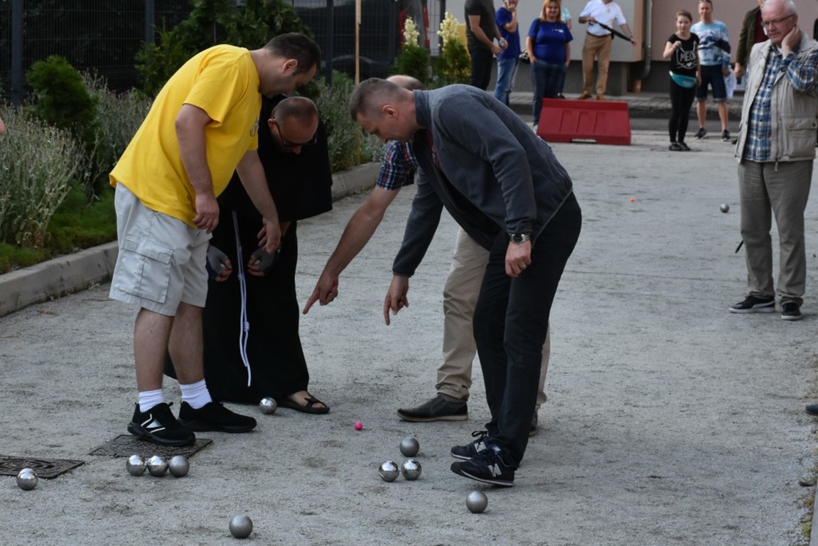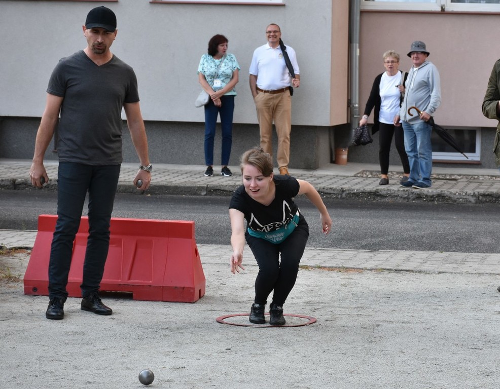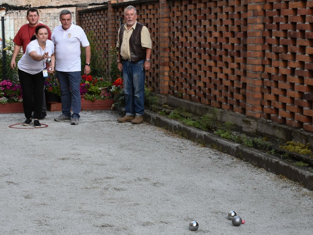 Sobotni dzień miał wiele atrakcji, a jedną z nich były zmagania sześciu trzyosobowych drużyn pod Czarną Wieżą. Gra polega na rzucaniu z wytyczonego okręgu metalowymi kulami (tj. bulami; od francuskiego słowa boule – kula) o średnicy od 70,5 do 80 mm i ciężarze 650–800 g. w kierunku małej drewnianej lub plastikowej kulki o średnicy 30 mm, nazywanej "świnką”. W danej rozgrywce każdy gracz starał się umieścić swoją bulę jaknajbliżej świnki lub wybić punktujące (stojące najbliżej świnki) bule przeciwnika. Gra - wbrew pozorom, dawała uczestnikom naprawdę sporo emocji. Ostatecznie, po podsumowaniu wyników, najlepiej wypadła drużyna reprezentująca Gościniec Pod Zielonym Jajem. Brawo! Kolejne miejsca zajęły ekipy reprezentujące: Zakon Franciszkanów, młodzież lwówecką, Urząd Gminy i Miasta w Lwówku Śląskim, wielkopolski Lwówek oraz Chrastavę.