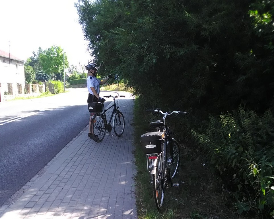 - 25 lipca br. w trakcie patrolu rowerowego dokonaliśmy przeglądu ciągów komunikacyjnych pieszych z uwagą na zakrzaczenia wchodzące w chodniki oraz inne niebezpieczeństwa. - informuje Komendant Krzysztof Siczek. - Informacje o takich sytuacjach w ostatnim czasie przekazywali Straży Miejskiej mieszkańcy naszej gminy i miasta. Takie niedogodności ujawniono przy ulicy Betleja, a także w pasie drogi wojewódzkiej nr 364 przy ulicy Złotoryjskiej, przy której również zlokalizowano wyłamany znak „D-6” przejście dla pieszych. Natomiast w Płóczkach Dolnych wzdłuż drogi wojewódzkiej nr 364 zauważono niebezpiecznie suche konary w koronach drzew, które mogą stanowić zagrożenie dla pieszych oraz innych uczestników ruchu drogowego.