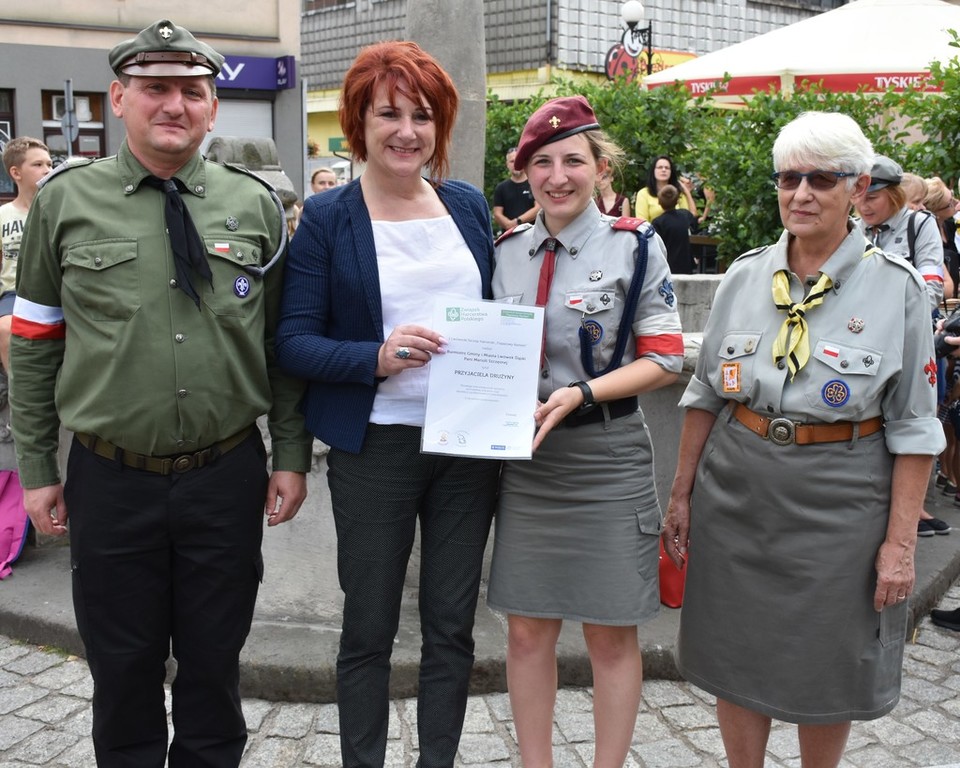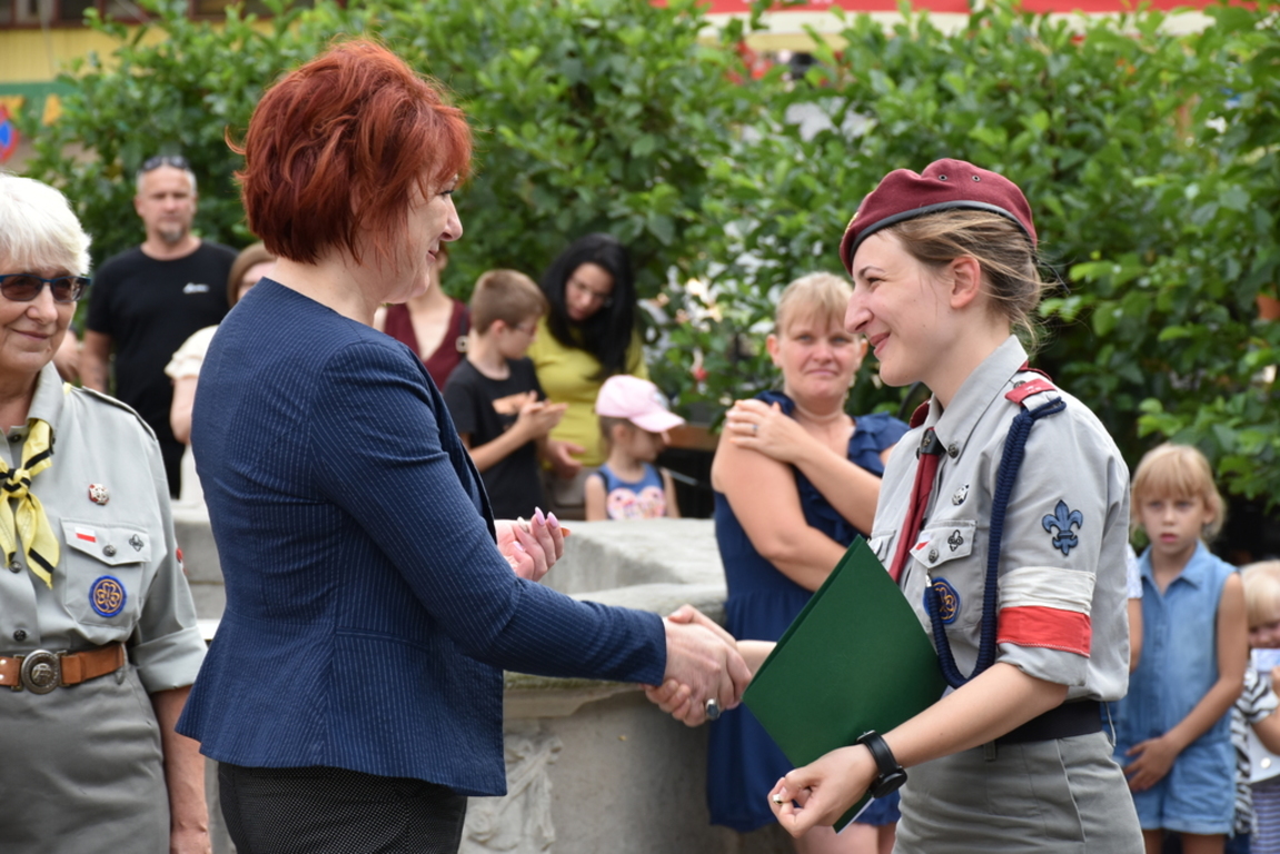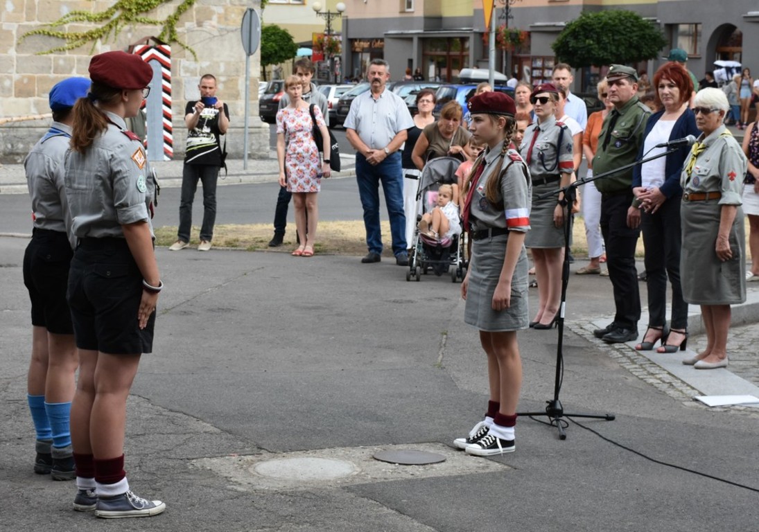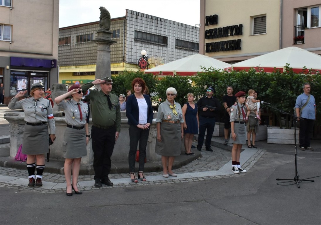 1 sierpnia br. o godz. 17.00 na lwóweckim rynku zawyły syreny, przypominające o polskich bohaterach, którzy w 1944 roku walczyli o wolną i niepodległą Polskę. Po złożeniu raportów przez drużynowych, wszyscy zgromadzeni zaśpiewali hymn narodowy. Po jego zakończeniu podharcmistrz Piotr Wiśniowski przeczytał list pochwalny Naczelniczki ZHP dla przewodniczki Kai Kowalskiej. Następnie wręczono dwa tytuły "Przyjaciela Drużyny". Otrzymali go: Pani Mariola Szczęsna Burmistrz Gminy i Miasta Lwówek Śląski oraz Pan Dariusz Dereń.