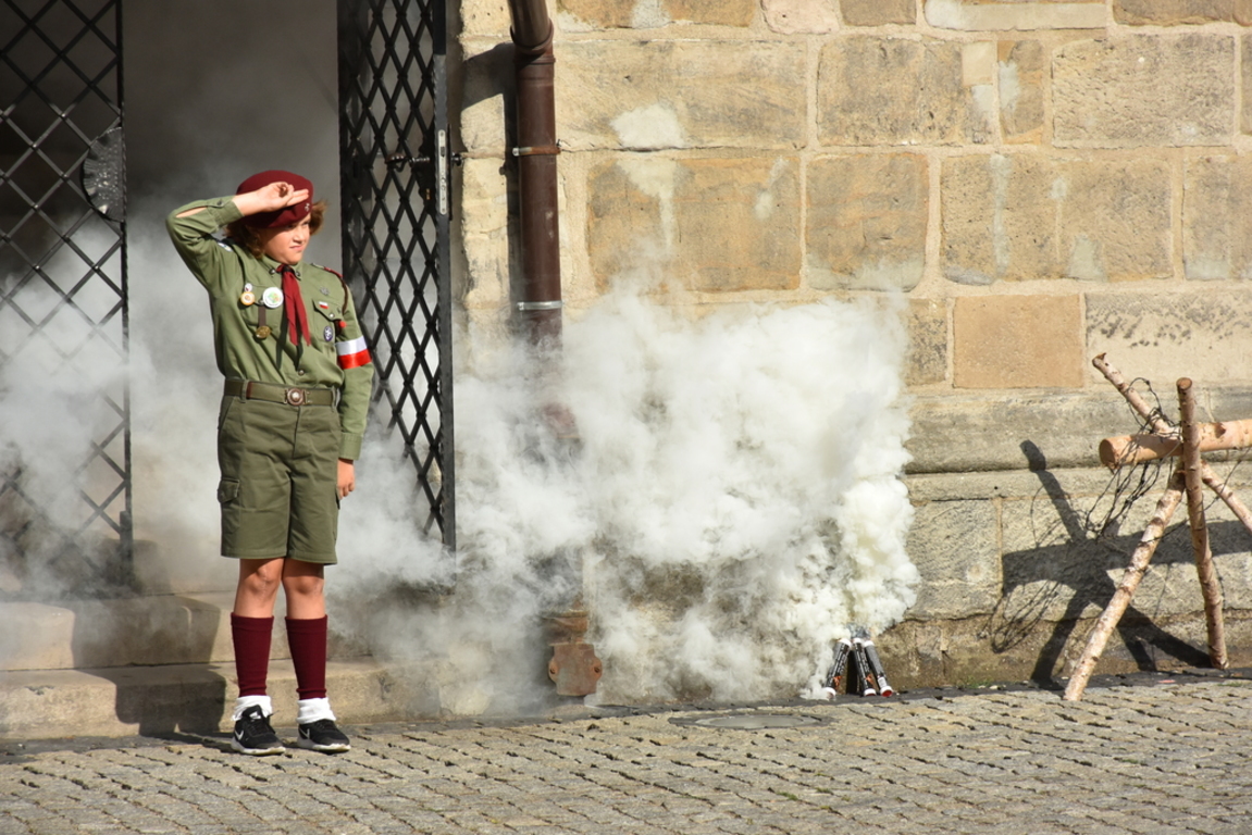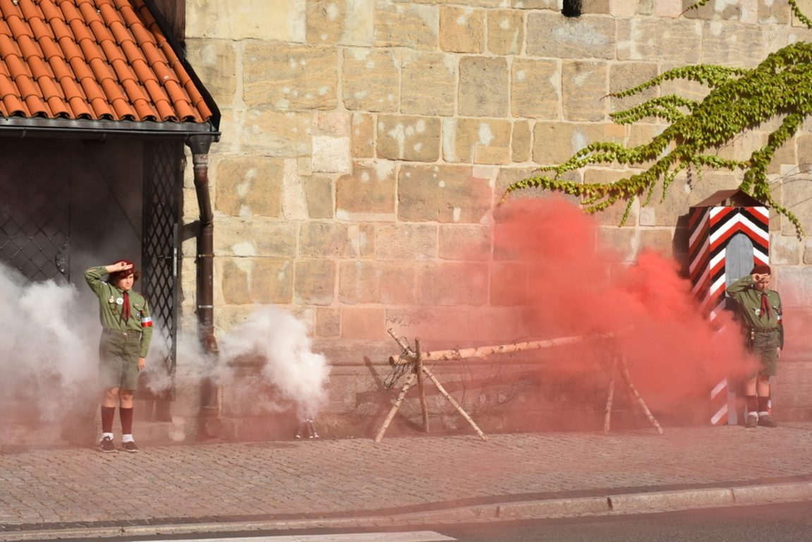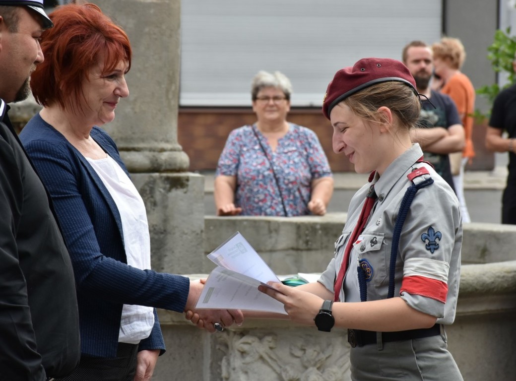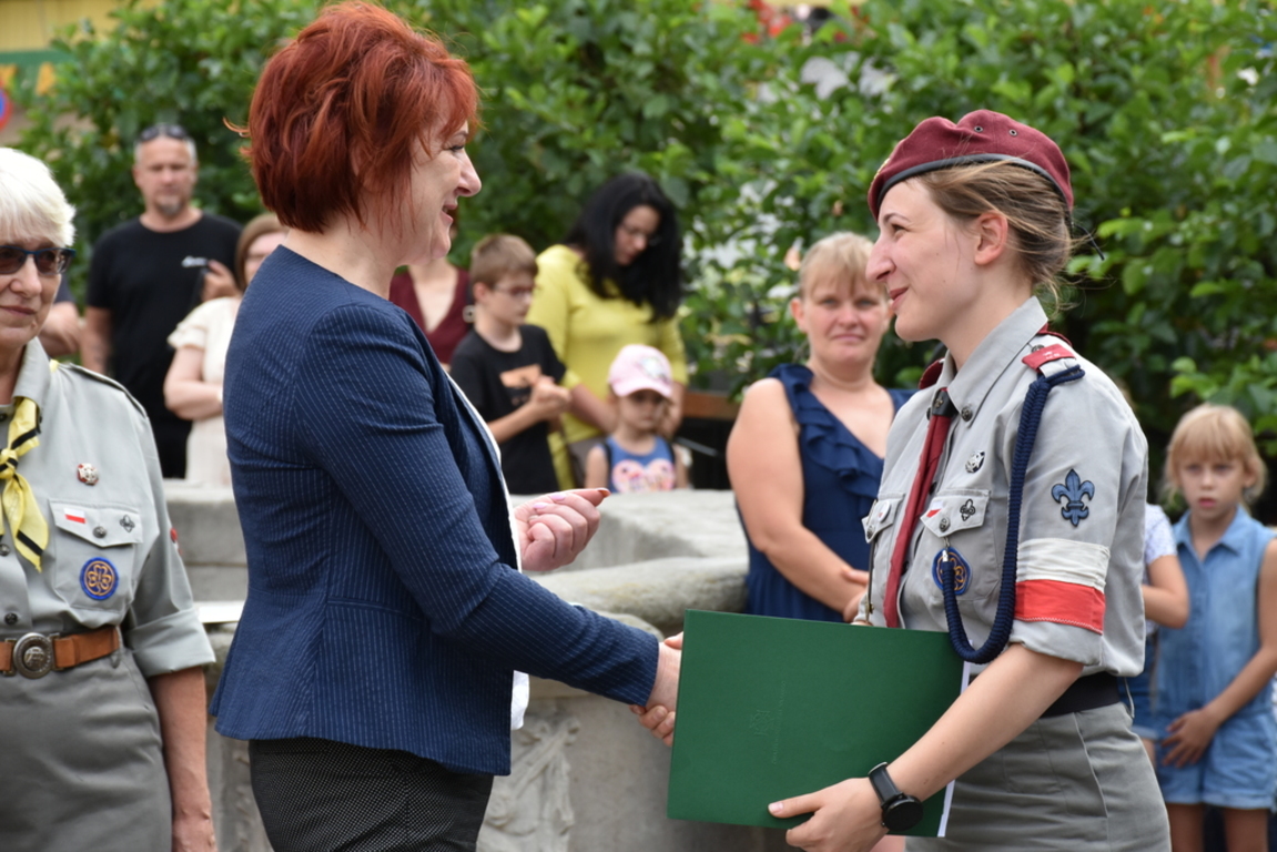 1 sierpnia br. o godz. 17.00 na lwóweckim rynku zawyły syreny, przypominające o polskich bohaterach, którzy w 1944 roku walczyli o wolną i niepodległą Polskę. Po złożeniu raportów przez drużynowych, wszyscy zgromadzeni zaśpiewali hymn narodowy. Po jego zakończeniu podharcmistrz Piotr Wiśniowski przeczytał list pochwalny Naczelniczki ZHP dla przewodniczki Kai Kowalskiej. Następnie wręczono dwa tytuły "Przyjaciela Drużyny". Otrzymali go: Pani Mariola Szczęsna Burmistrz Gminy i Miasta Lwówek Śląski oraz Pan Dariusz Dereń.