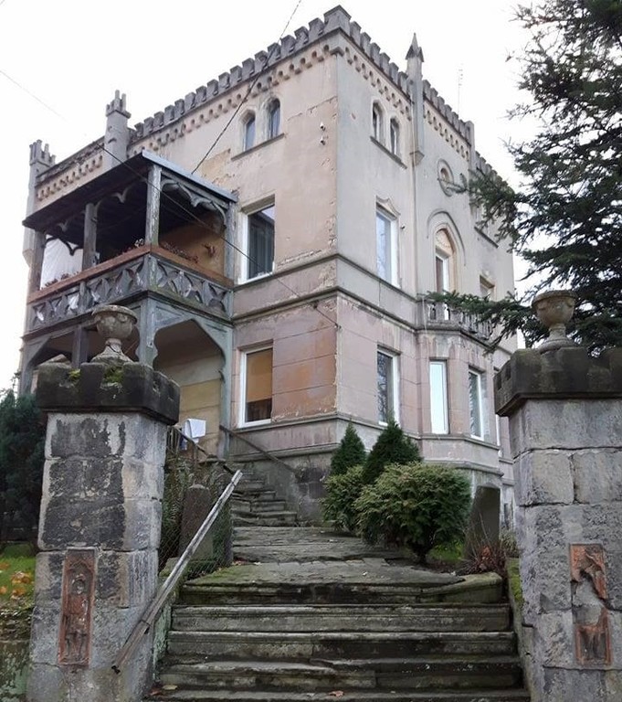 Jedziemy bliżej, na ulicę Kamienną... Po prawej stronie płynie rzeczka, wyglądająca niczym fosa obronna! Tuż nad nią stoi "zameczek", niezwykły, piękny, choć zaniedbany. W rzeczywistości to willa wzniesiona w stylu neogotyckim z 1880 roku, stylizowana na średniowieczną warownię. Jest unikalna, a turystom może kojarzyć się z zamkiem w Karpnikach pod Jelenią Górą. Pomysłodawcą i zarazem fundatorem niezwykłej inwestycji był właściciel tutejszego kamieniołomu piaskowca (nieczynny od dekad), zatem materiału budowlanego mu nie brakowało. Zapewne uniesiony duchem śląskiego romantyzmu, historii pełnych rycerzy i dam, postanowił sam został panem na włościach. Możemy sobie tylko wyobrazić, co zrobiło niegdyś ściany jego domu: neogotyckie meble, arrasy, rozmaite militaria... I jak opowiada świadek - niezwykły sejf wmurowany w ścianę, który otwarty oglądał w dzieciństwie...