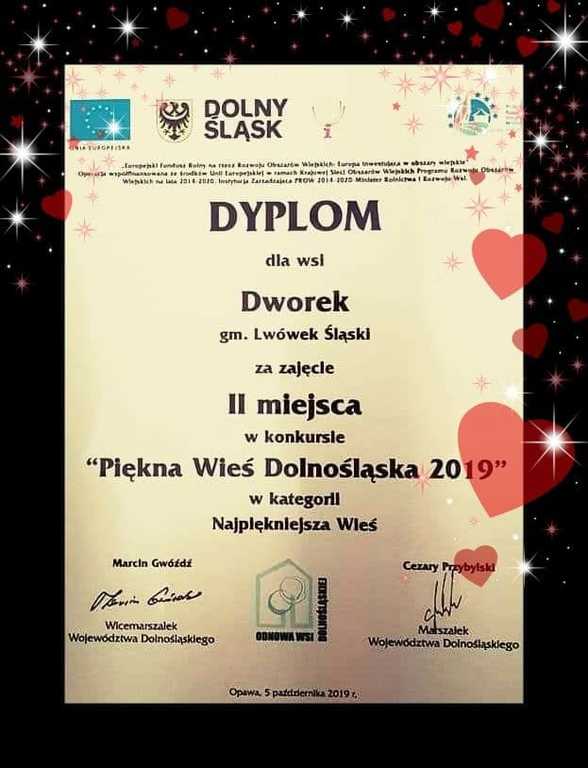 - W sobotę w Opawie koło Lubawki, Marszałek Cezary Przybylski, wręczył nam nagrodę za zajęcie drugiego miejsca, w konkursie "Piękna Wieś Dolnośląska 2019", w kategorii „Najpiękniejsza Wieś”. Jest to zasługa mieszkańców wsi, ale też wszystkich wspierających nas instytucji, firm i osób z nami zaprzyjaźnionych. Za co wszystkim serdecznie Dziękuję. Te same słowa kieruję do władz UMiG za wspieranie naszych inicjatyw - powiedział sołtys i radny Piotr Wiśniowski.