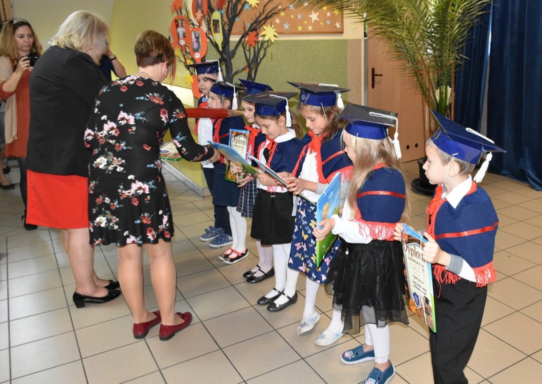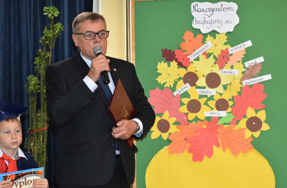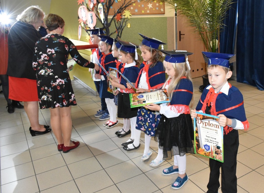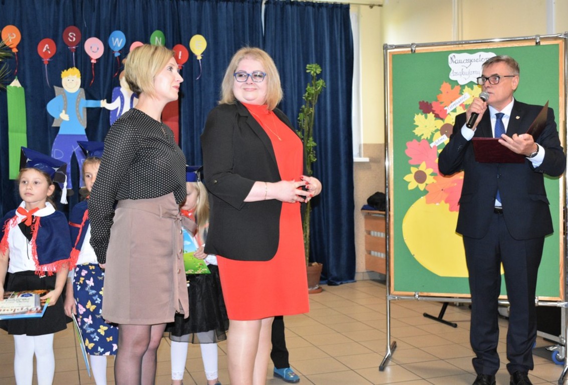 Podczas uroczystej akademii, Pan Lesław Krokosz nagrodził Panią Dyrektor Elżbietę Piżuk oraz wręczył nagrodę Burmistrza Gminy i Miasta Lwówek Śląski dla Pani Marty Gos. Gratulujemy! W tym uroczystym dniu miał też miejsce bogaty program artystyczny z udziałem młodszych uczniów, którzy po tańcach, wesołych piosenkach i specjalnym teście, otrzymali zgodę publiczności na ślubowanie i pasowanie na pierwszoklasistów. Na koniec głos zabrał radny Mateusz Rusinek.