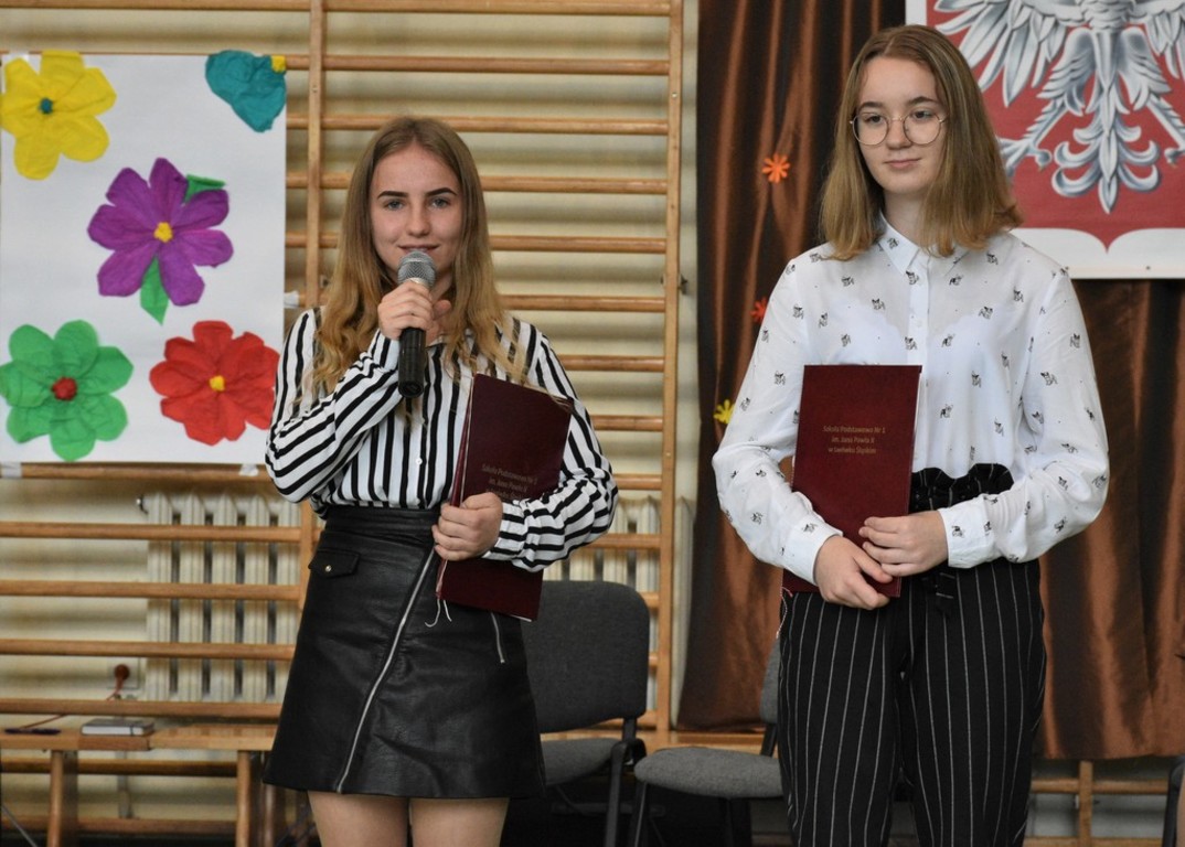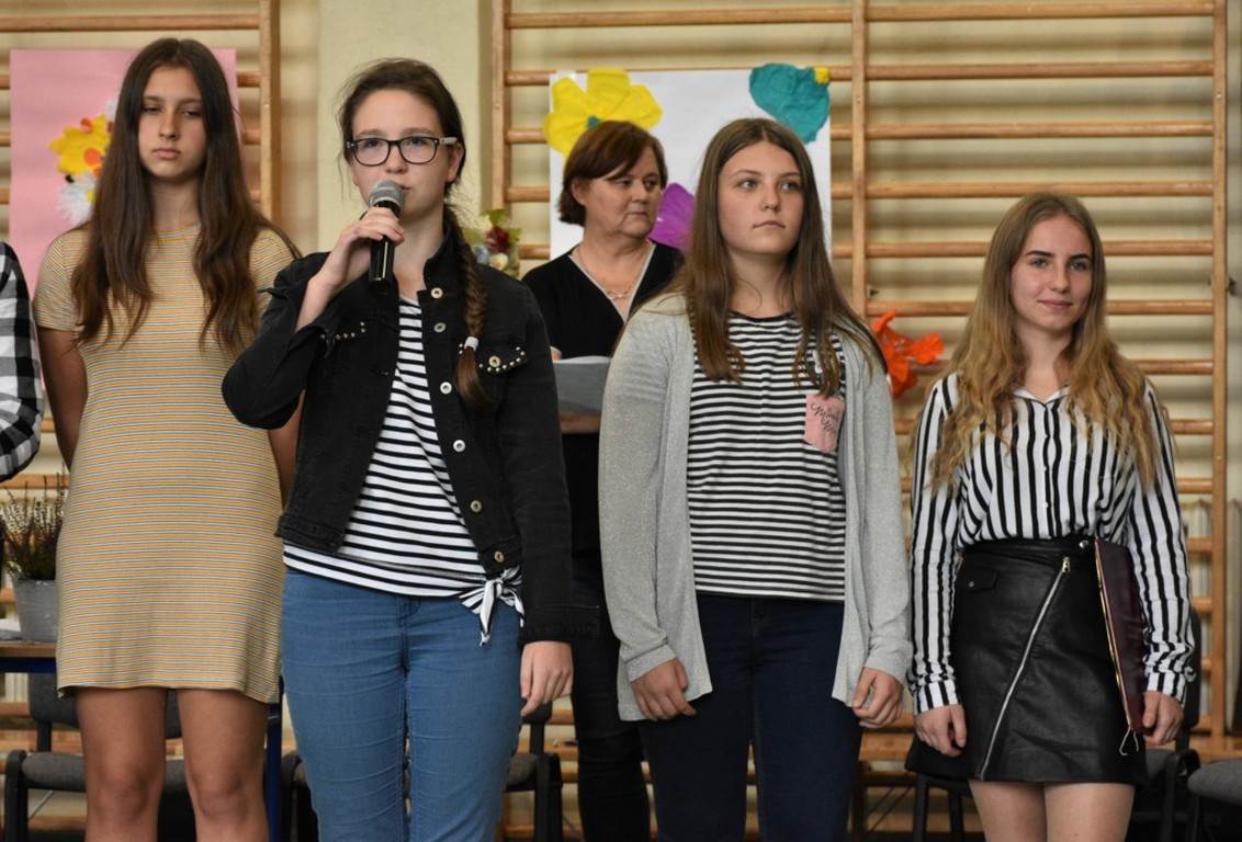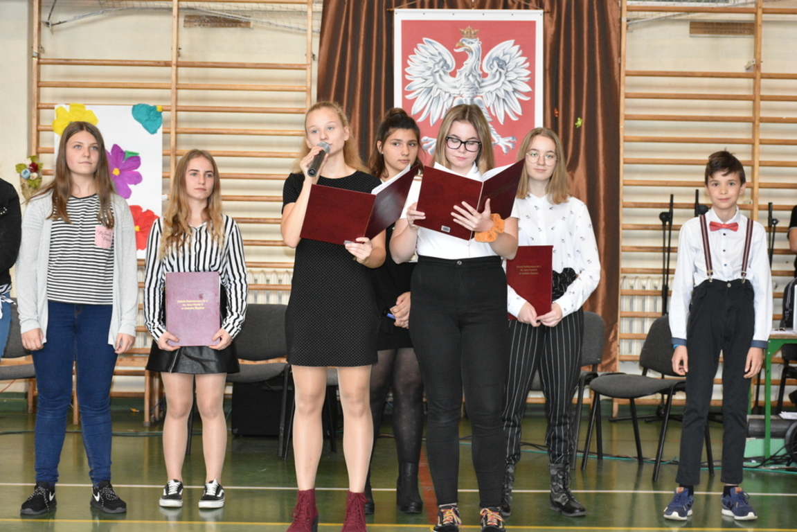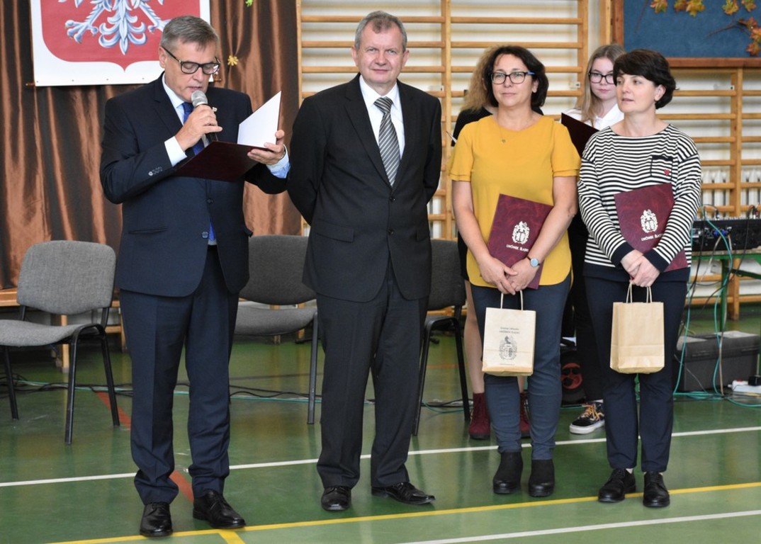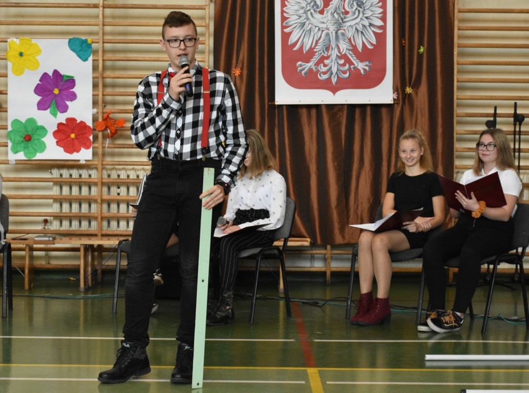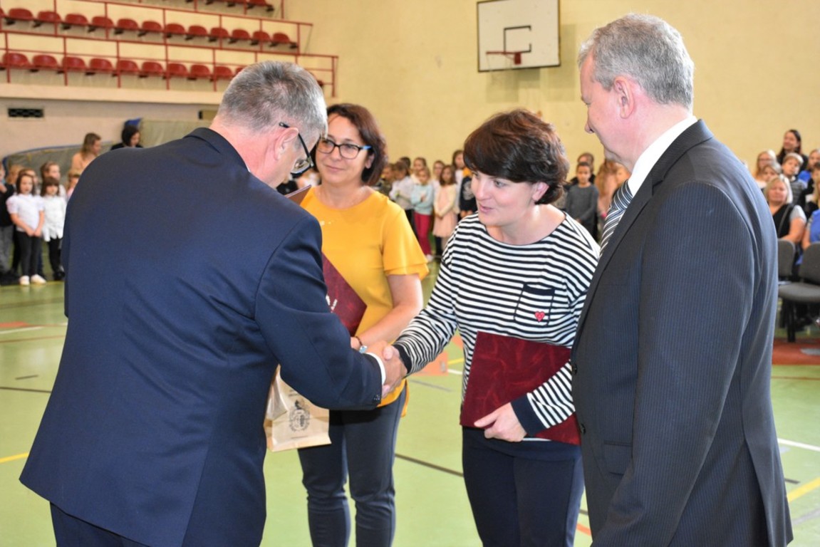 Po przemówieniu Dyrektora Roberta Primke głos zabrał Wiceburmistrz Lesław Krokosz, który wręczył nagrodę Burmistrza Gminy i Miasta Lwówek Śląski. Otrzymały ją dwie nauczycielki: p. Grażyna Ruta i p. Agnieszka Szczerepa. Nagrodzony został również Dyrektor Szkoły Podstawowej nr 1 w Lwówku Śl. Gratulujemy! Po zakończeniu części oficjalnej, dla uczczenia święta pracowników pedagogicznych i niepedagogicznych Samorząd Uczniowski przygotował wesołą inscenizację.