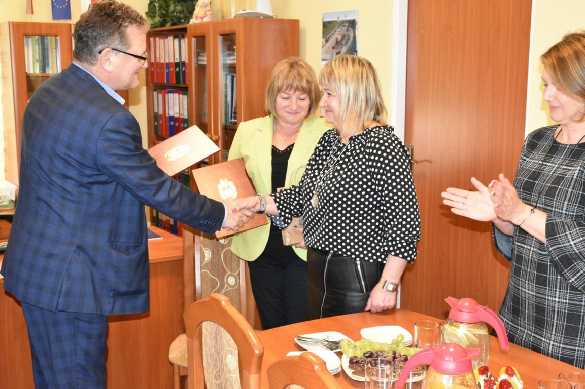 Ponieważ dzieci dzisiaj miały swoje zajęcia, uroczystość była niewielka i krótka, acz bardzo sympatyczna i słodka. ;) Jako, iż zaproszono na nią przedstawiciela naszej gminy do przedszkola udał się Sekretarz Robert Szawłowski, który w imieniu Pani Burmistrz Gminy i Miasta Lwówek Śląski wręczył dwie nagrody: Pani Dyrektor Urszuli Szmulewicz oraz nauczycielce i wychowawczyni Pani Barbarze Mroczek. Dodatkowe nagrody przyznała swym pracownicom Pani Dyrektor.