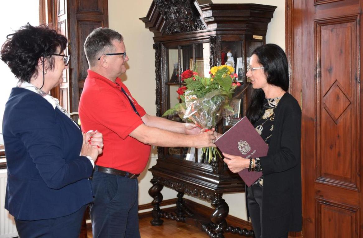 W poniedziałek 31 sierpnia 2020 r. Pani Burmistrz Mariola Szczęsna podziękowała dyrektor Elżbiecie Zienowicz za dotychczasową pracę, a zarazem pogratulowała powierzenia obowiązków nowej szefowej Lwóweckiej Biblioteki Publicznej Pani Aleksandrze Szymanowicz-Bogdan.