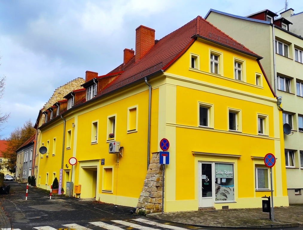 Na rogu ulicy Orzeszkowej i Szpitalnej od wielu dekad funkcjonuje sklep rybny. W XVIII wieku właścicielem budynku był Siegmund Schoen mistrz piekarski. W latach 30. ubiegłego stulecia na piętrze kamienicy mieszkał Hugo Menzel, mistrz piekarski, zaś na parterze mieściła się jego piekarnia.