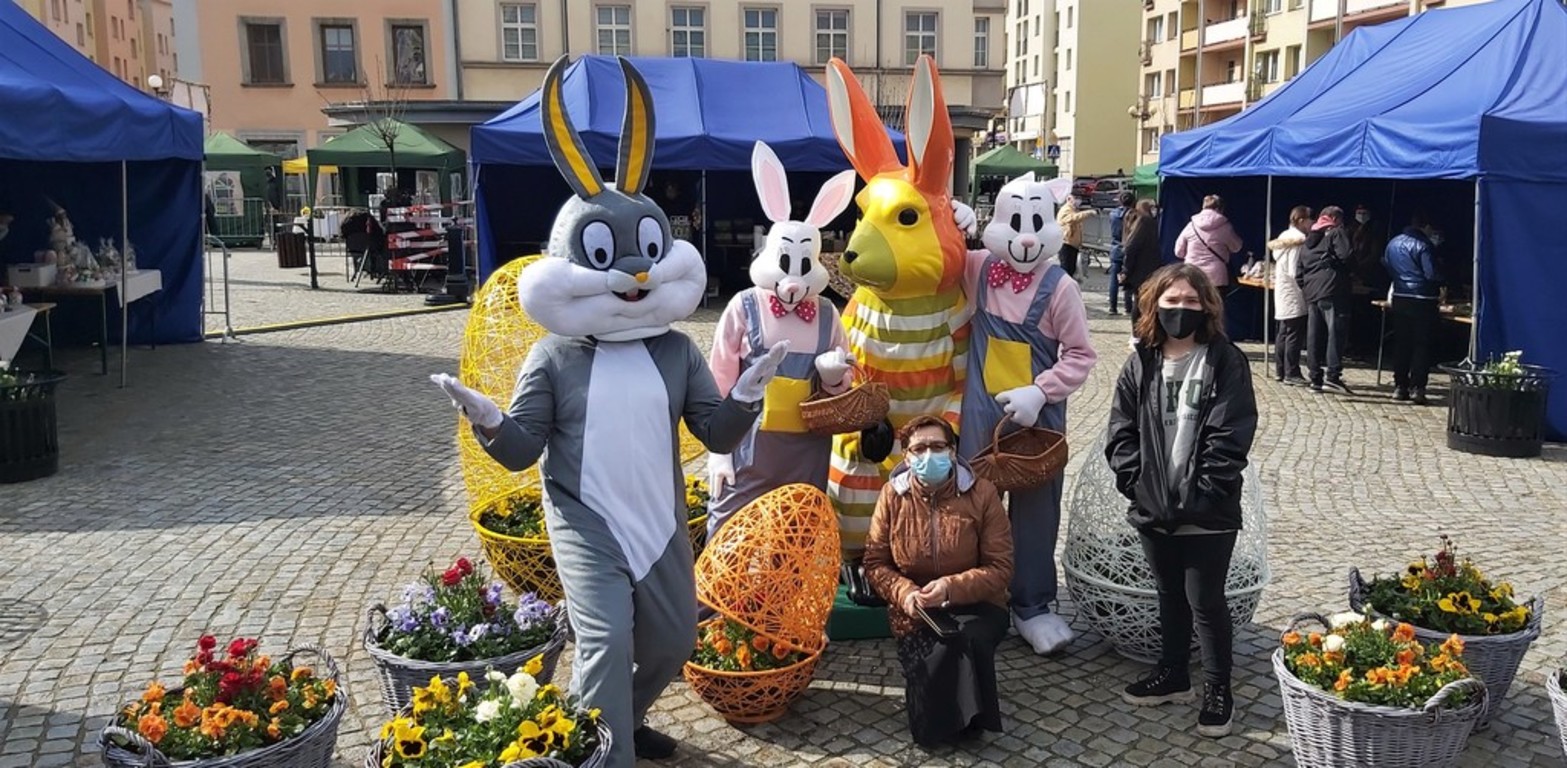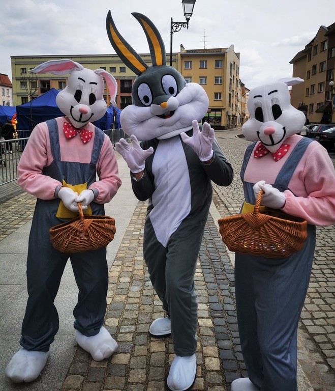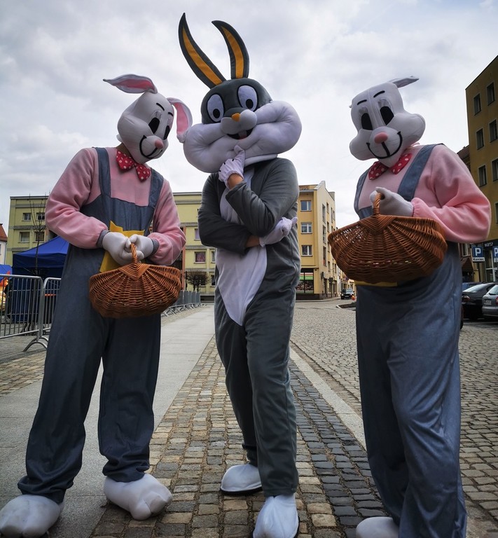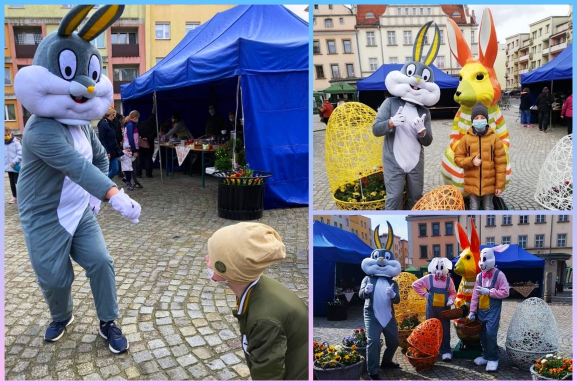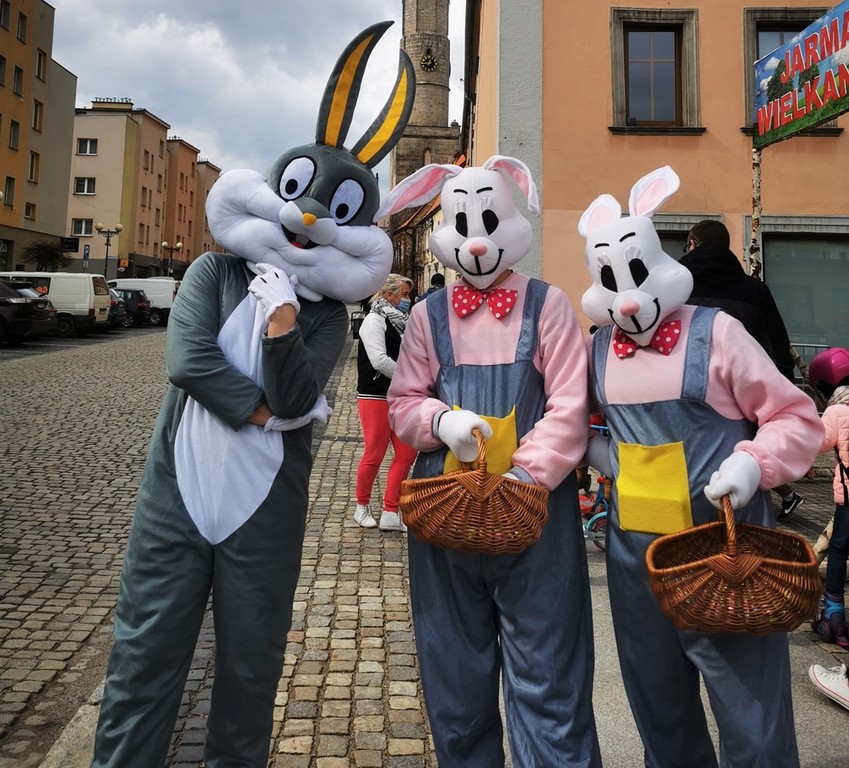 W sobotę i w niedzielę (27-28 marca 2021 r.) rynek w Lwówku Śląskim opanowały zające. Przypominały ludzi przebranych w kostiumy, ale nie dajmy się zwieść. Rodzice mówili swym pociechom, że zajączki zjadły zbyt wiele wielkanocnych: mazurków, żurków, serników, babek, pasztetów i jajek faszerowanych. I po prostu, urosły... ;D