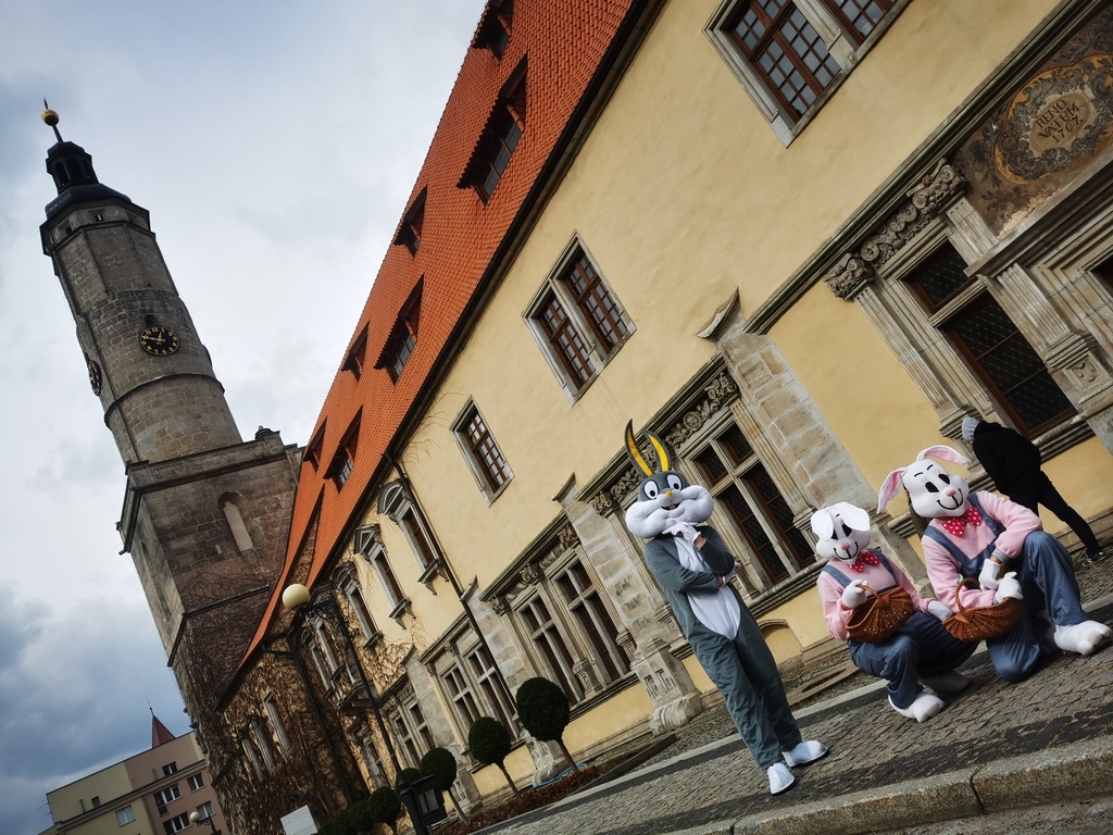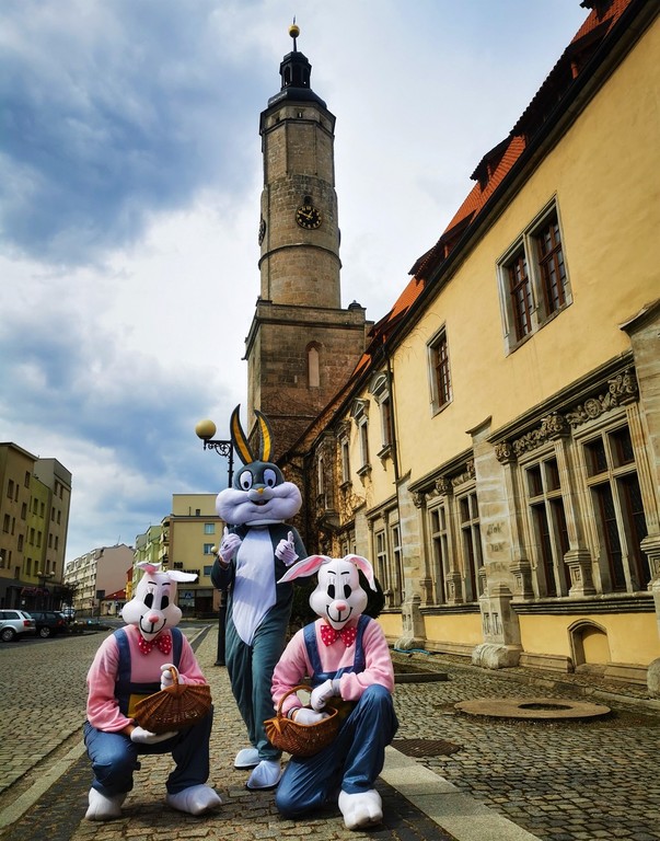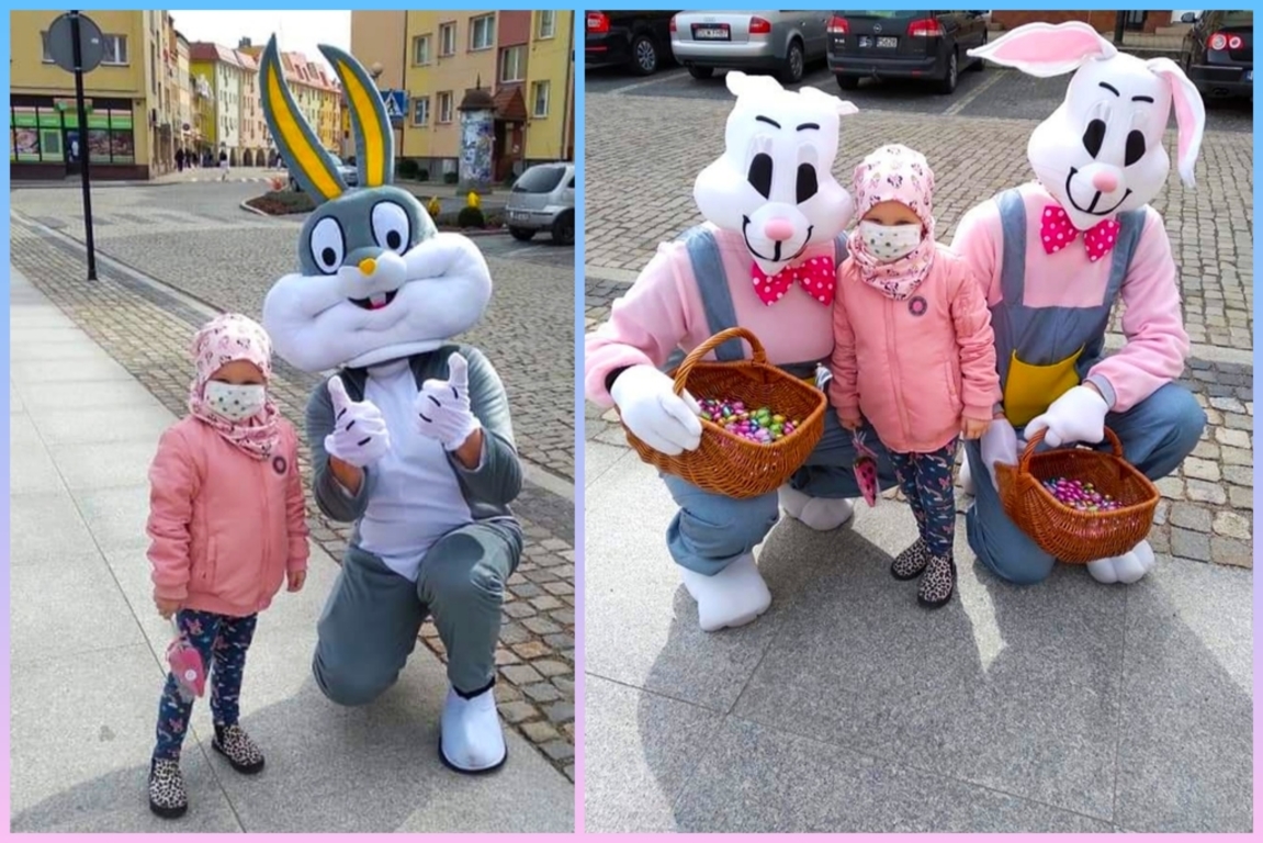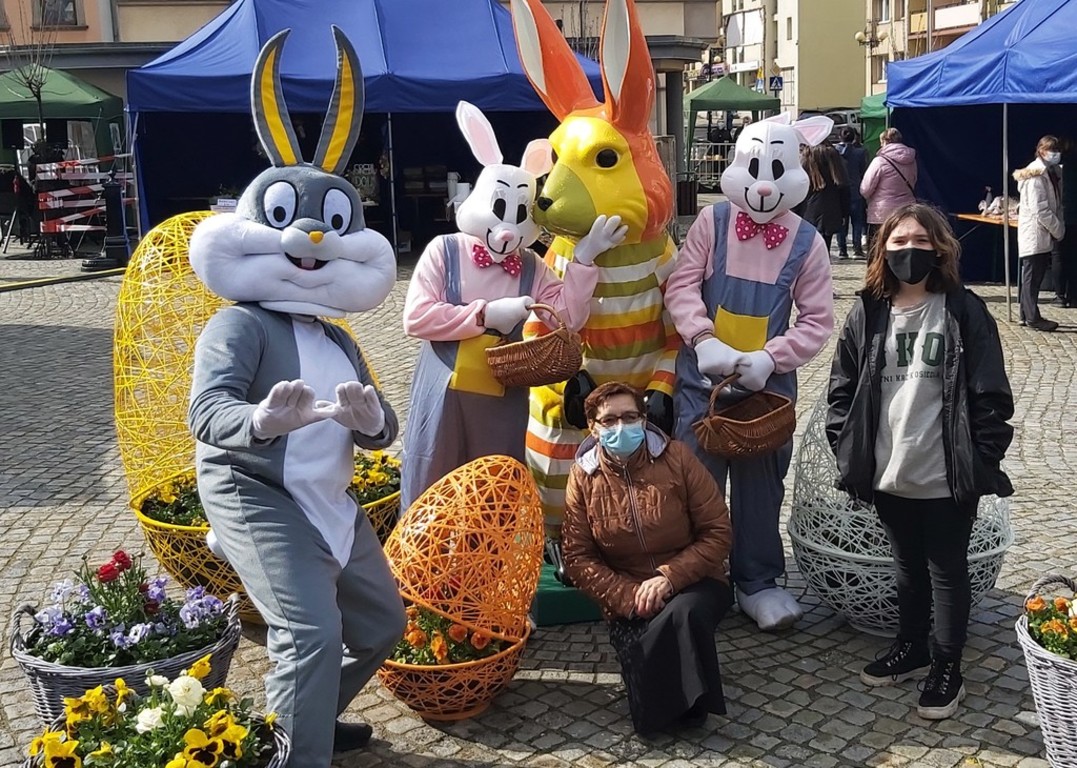 W sobotę i w niedzielę (27-28 marca 2021 r.) rynek w Lwówku Śląskim opanowały zające. Przypominały ludzi przebranych w kostiumy, ale nie dajmy się zwieść. Rodzice mówili swym pociechom, że zajączki zjadły zbyt wiele wielkanocnych: mazurków, żurków, serników, babek, pasztetów i jajek faszerowanych. I po prostu, urosły... ;D