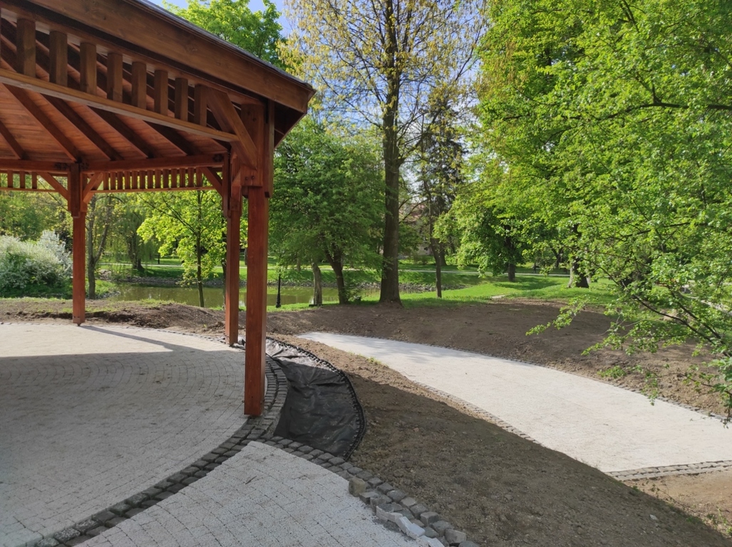 W Parku Miejskim, w miejscu dawnej betonowej "patelni", mamy dziś ładną, zadaszoną scenę, obok której pojawią się miejsca siedzące. Zniknęły betonowe schody z metalową poręczą, które zastąpiły granitowe stopnie. Prace wciąż trwają. O kolejnych zmianach będziemy informować na bieżąco...