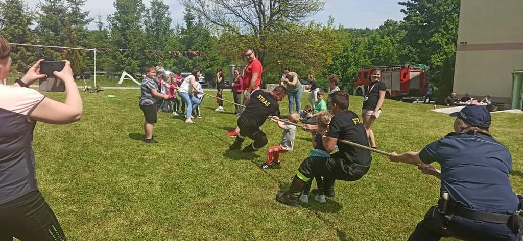 W dalszej części pikniku przedstawiciele Komendy Powiatowej Policji w Lwówku Śląski oraz Komendy Powiatowej Państwowej Straży Pożarnej w Lwówku Śląskim, uczestniczyli w pojedynku przeciągania liny, który wygrały dzieci. Na koniec spotkania na juniorów z wozu bojowego straży pożarnej spadł deszcz cukierków i dodatkowo każde otrzymało kolorowankę o tematyce bezpieczeństwa w ruchu drogowym.