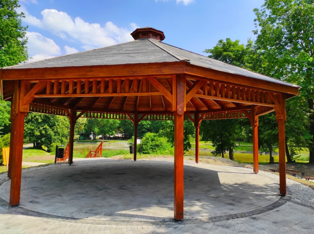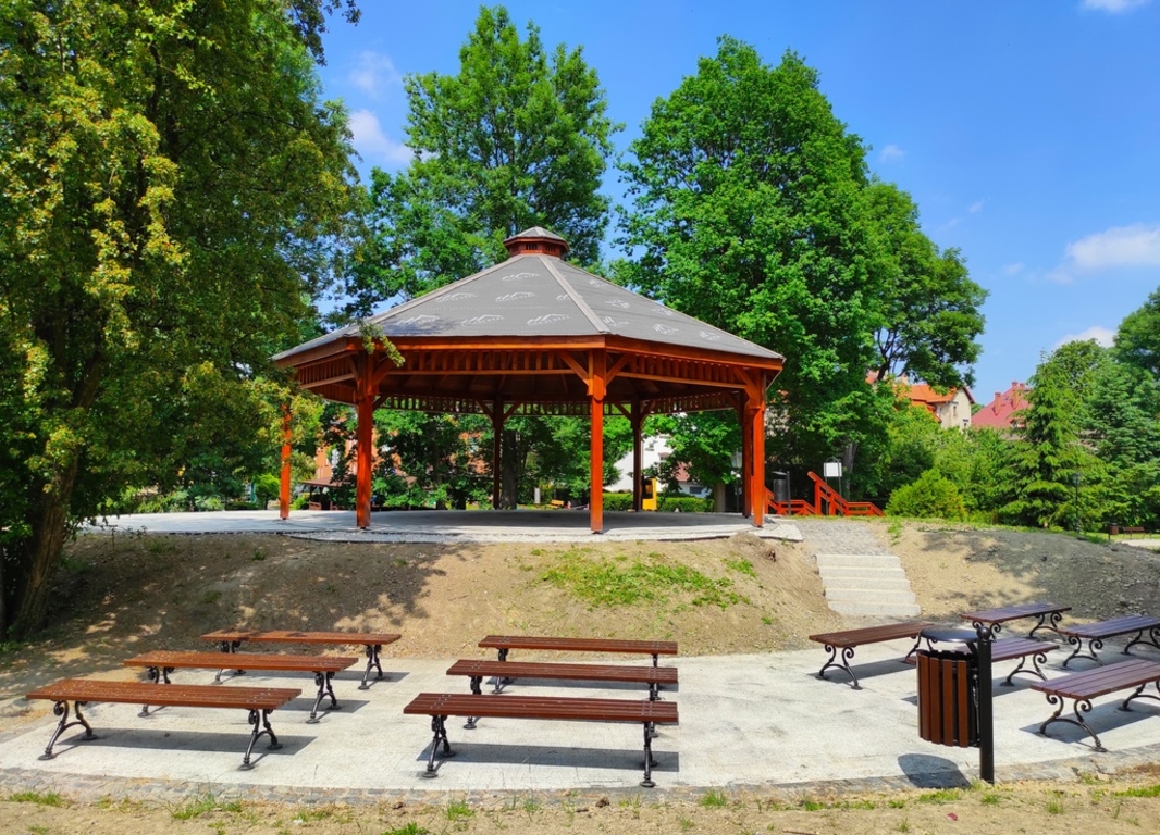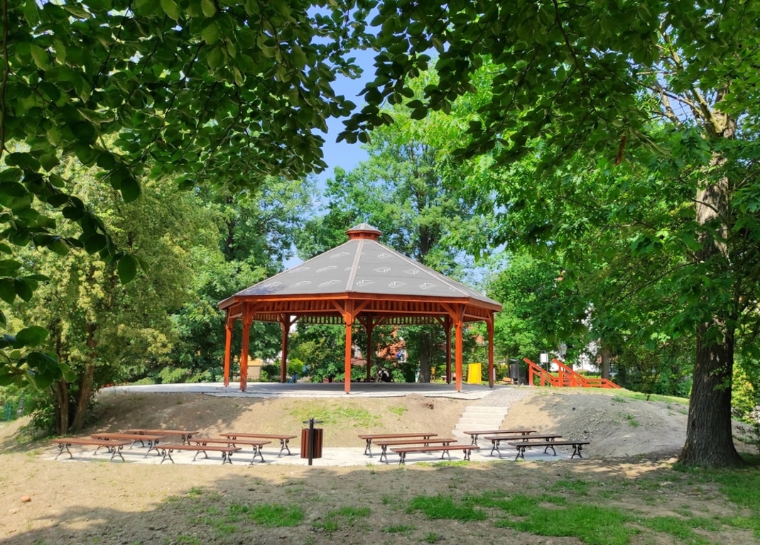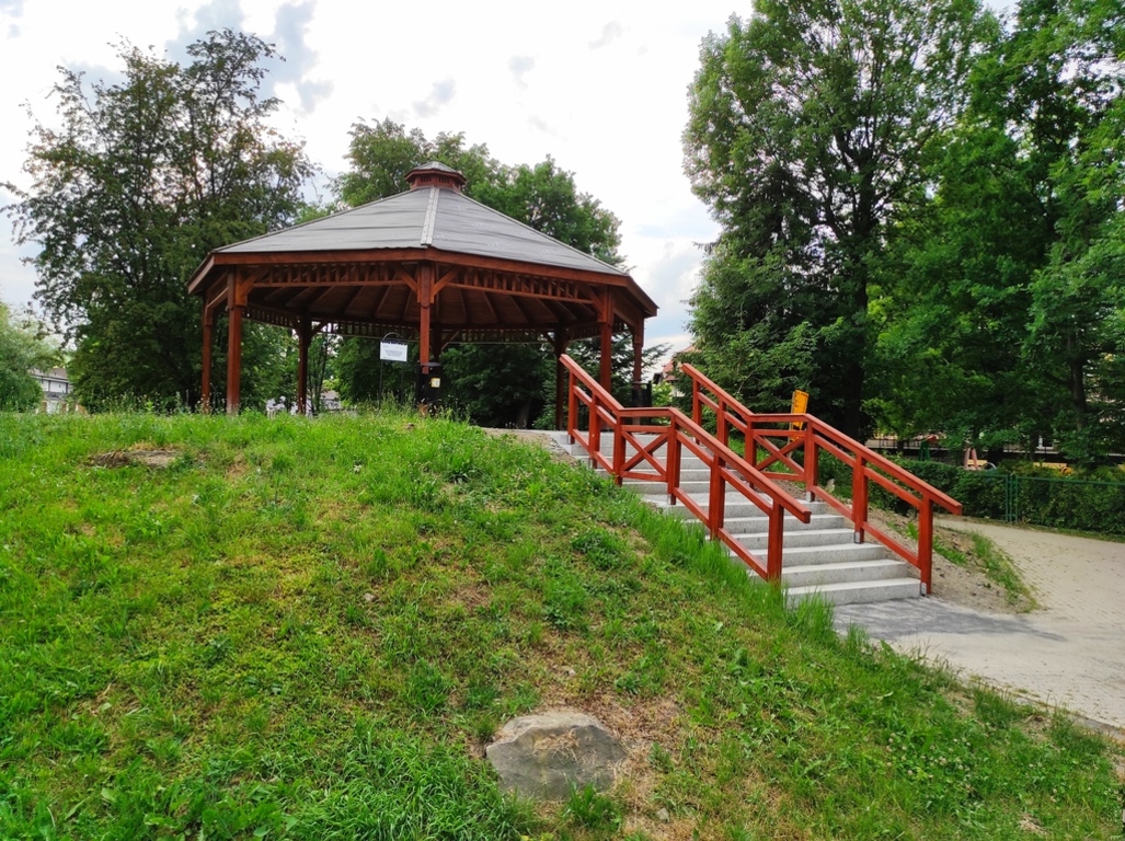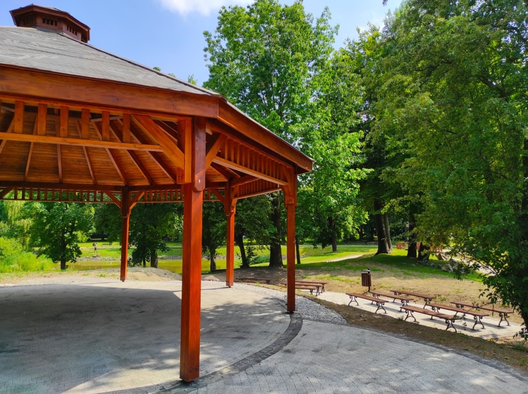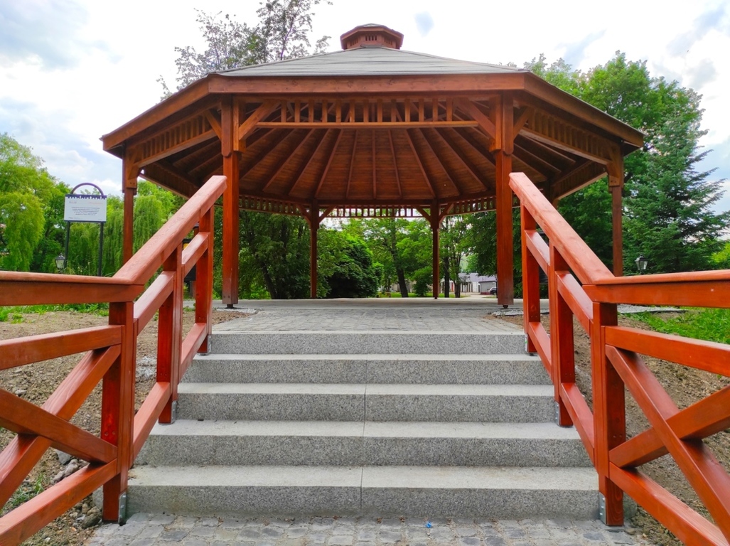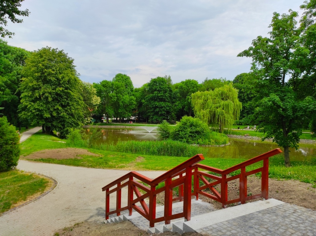 Nie da się ukryć, że swoim wyglądem balustrada - biegnąca wzdłuż nowych schodów - nawiązuje do drewnianych mostków w Parku Miejskim. Ostatnio pisaliśmy, że zainstalowane zostały miejsca siedzące dla widowni tuż pod sceną oraz kilkanaście ławek rozlokowanych wokół dwóch stawów. Niedługo będzie można zorganizować pierwsze koncerty! A to nie koniec zmian w w tym roku naszym parku!