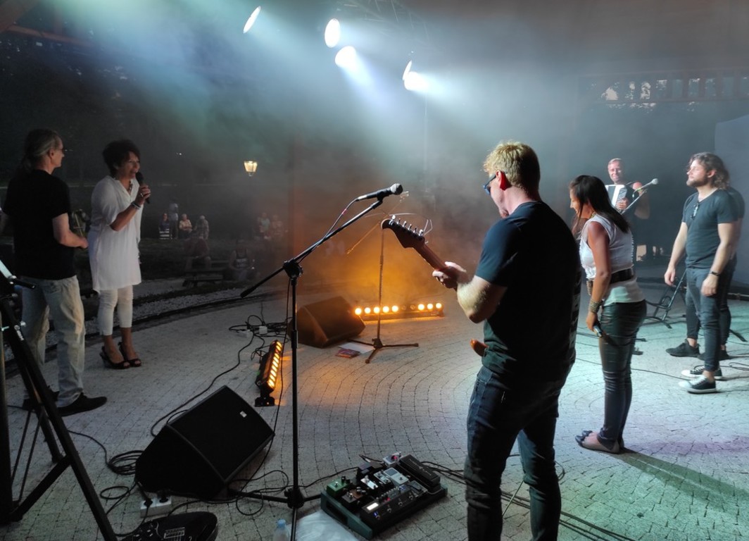 W piątek 30 lipca o godzinie 20.00 na scenie muzycznej altany pojawiła się Pani Burmistrz Mariola Szczęsna, witając serdecznie licznie przybyłych na pierwszy folkowo-rockowy koncert w Parku Miejskim. Zespół "Słowiany" przedstawił bliżej Dyrektor Lwóweckiego Ośrodka Kultury Tadeusz Dzieżyc. Barwne osobowości, energiczna muzyka, słowiański duch - to najkrótsze określenie kapeli, która zagrała w altanie koncertowej, położonej między dwoma stawami. Ich muzyka to ogromna dawka pozytywnej energii, która przyciąga wszystkich niezależnie od wieku.