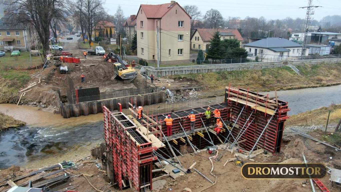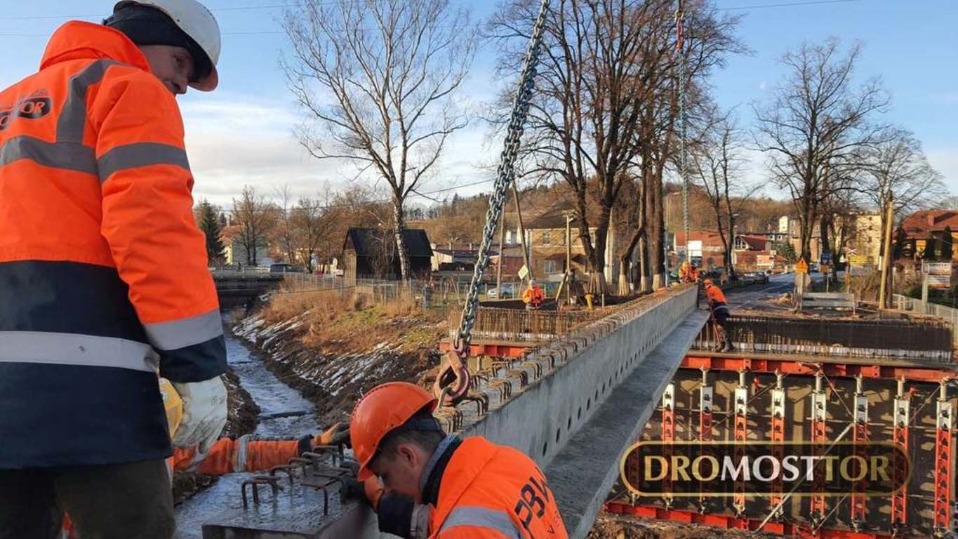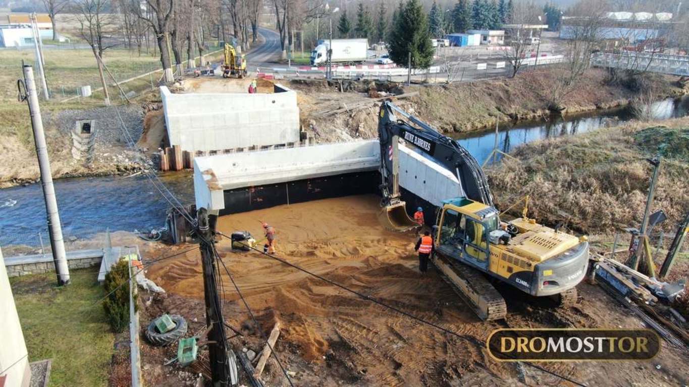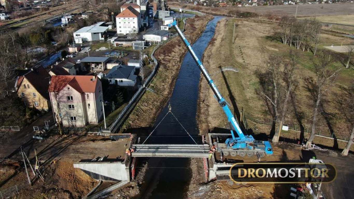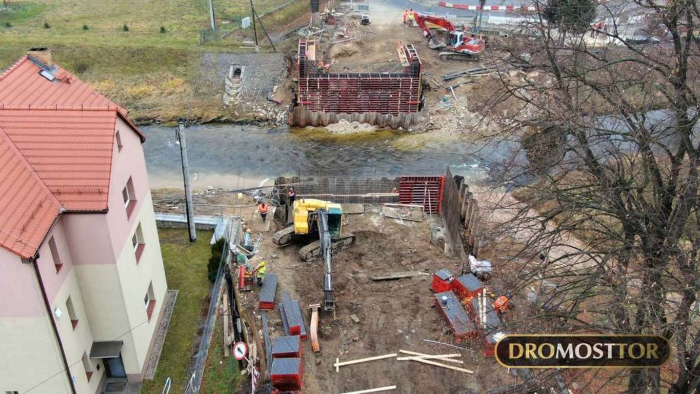 Wpis 3 lutego 2021 r.: 15 ton masy , oraz 18m długości - tyle mierzyła każda z 13 belek przęsłowych zamontowanych dzisiaj we Lwówku Śląskim. Z uwagi na rozpiętość elementów do pracy zaangażowany został 130 tonowy dźwig. Prace przebiegły bez większych komplikacji i już ok. 15.00 mogliśmy się cieszyć z ponownego połączenia obu brzegów Bobru w tym miejscu. Most powstający na DW-364 zastąpi starą, niespełniającą już kryteriów bezpieczeństwa konstrukcję łukową.