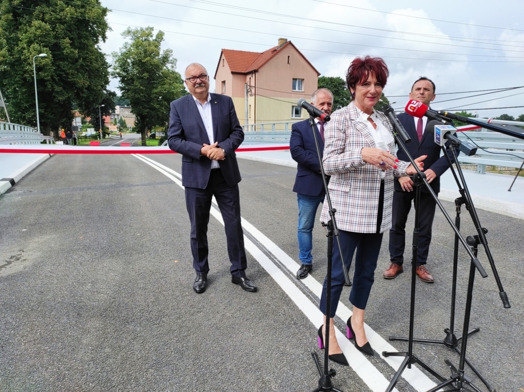 - Szanowni Państwo, ta inwestycja jest dla nas bardzo ważna. Ten most jest mostem strategicznym, ponieważ przejeżdżamy tędy do Legnicy, do Wrocławia i innych dużych ośrodków miejskich. Chciałabym dodać, że naprawdę do tego, iż most zastępczy tutaj powstał i mieliśmy spore udogodnienie, w dużej mierze przyczyniła się determinacja naszych przedsiębiorców i mieszkańców. W Lwówku Śląskim miało miejsce spotkanie z przedstawicielami Dyrekcji DSGiK oraz Zarządu Dróg Wojewódzkich, aby stworzyć bezpieczne warunki dla mieszkańców. Za to dziękujemy wszystkim, którzy się do tego przyczynili. Dziękuję serdecznie także firmie Dromosttor; dumna jestem, że jest w naszej gminie firma, która robi takie inwestycje. Mam nadzieję Panie Marszałku, Szanowny Panie Dyrektorze, że znajdą się środki na drogę 297 i 364. I wtedy będziemy wszyscy uszczęśliwieni. Dziękuję wszystkim i życzę bezpiecznej jazdy... - dodała Mariola Szczęsna, Burmistrz Gminy i Miasta Lwówek Śląski.