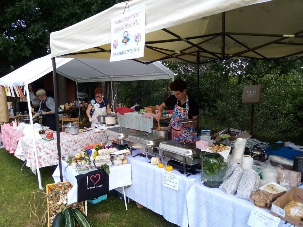 - Należycie uraczyłyśmy gości gołąbkami ziemiaczanymi oraz gołąbkami z grzybów, do tego przepyszne krokiety z kurkami i żółtym serem. Nie zabrakło tradycyjnego żuru czy bigosu. Pierogi i krokiety zniknęły same. Do tego wyśmienite ciasta i chlebki przygotowane przez nasze Panie. Oczywiście jak zawsze promowałyśmy naszą Małą Ojczyznę, Gminę Lwówek Śląski. Ponadto Ekosłowianki tego dnia uczestniczyły również w Dożynkach Gminnych w Lwówku Śląskim i przepięknie reprezentowały Koło Gospodyń oraz naszą wieś. Dziękuję serdecznie wszystkim Paniom które uczestniczyły w tych ważnych dla nas wydarzeniach. Pozdrawiam gorąco - mówi Jolanta Kuklińska.