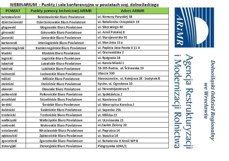 Webinar pod patronatem Ministra Rolnictwa i Rozwoju Wsi pana Grzegorza Pudy oraz Poseł na Sejm RP pani Agnieszki Soin dedykowany dla Dolnego Śląska odbędzie się w dniu 20 października 2021 r. na platformie Teams. Planowana tematyka będzie obejmować pełen wachlarz informacji istotnych dla mieszkańców wsi, zaprezentowany przez instytucje branży rolniczej takie jak: