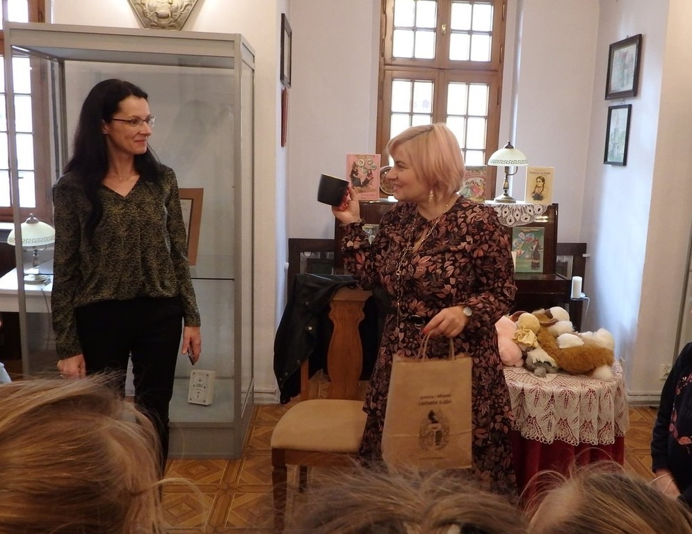 Na koniec spotkania Autorka podpisywała swoje książki, po czym otrzymała prezent w postaci kubka z serii: "I Love Lwówek Śląski" oraz zestaw pamiątek promujących naszą gminę.