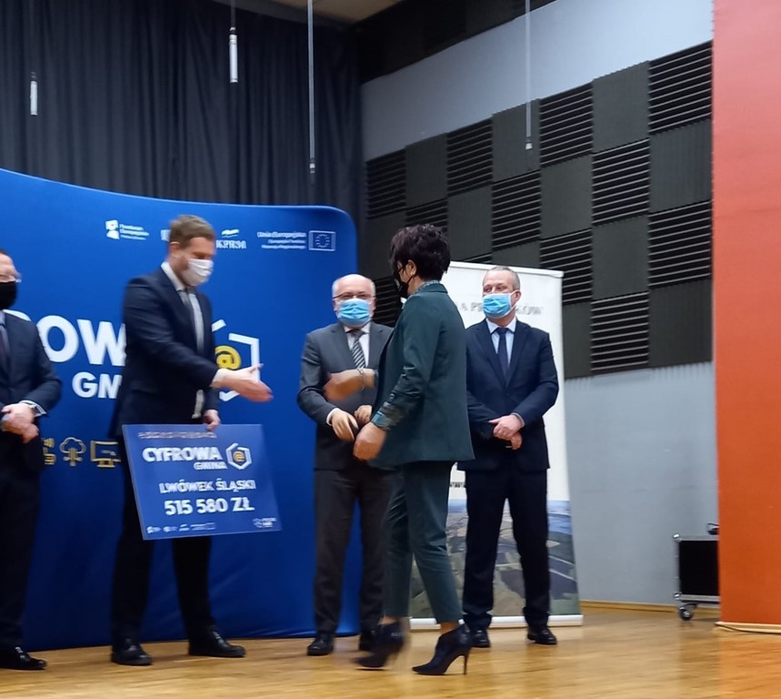 Gmina Lwówek Śląski otrzymała promesę na kwotę kwotę 515 580 zł z Europejskiego Funduszu Rozwoju Regionalnego w ramach Polskiego Ładu i Funduszu Europejskiego "Polska Cyfrowa".