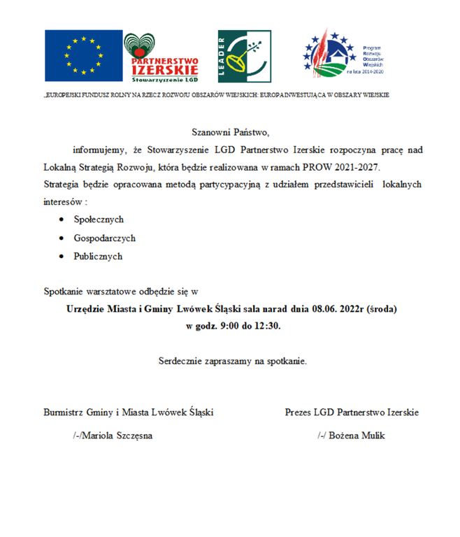 informujemy, że Stowarzyszenie LGD Partnerstwo Izerskie rozpoczyna pracę nad Lokalną Strategią Rozwoju, która będzie realizowana w ramach PROW 2021-2027.