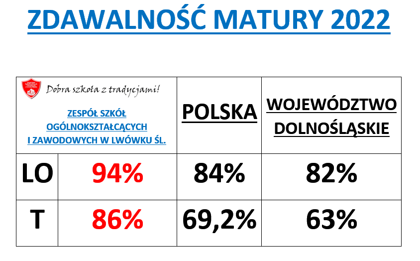 Wczoraj poznaliśmy wyniki egzaminu maturalnego. Uczniowie Zespołu Szkół Ogólnokształcących i Zawodowych w Lwówku Śl. tradycyjnie uzyskali najwyższe wyniki egzaminu maturalnego w powiecie, które są również wyższe niż średnie województwa dolnośląskiego i kraju. Zdawalność matury w lwóweckim Liceum Ogólnokształcącym