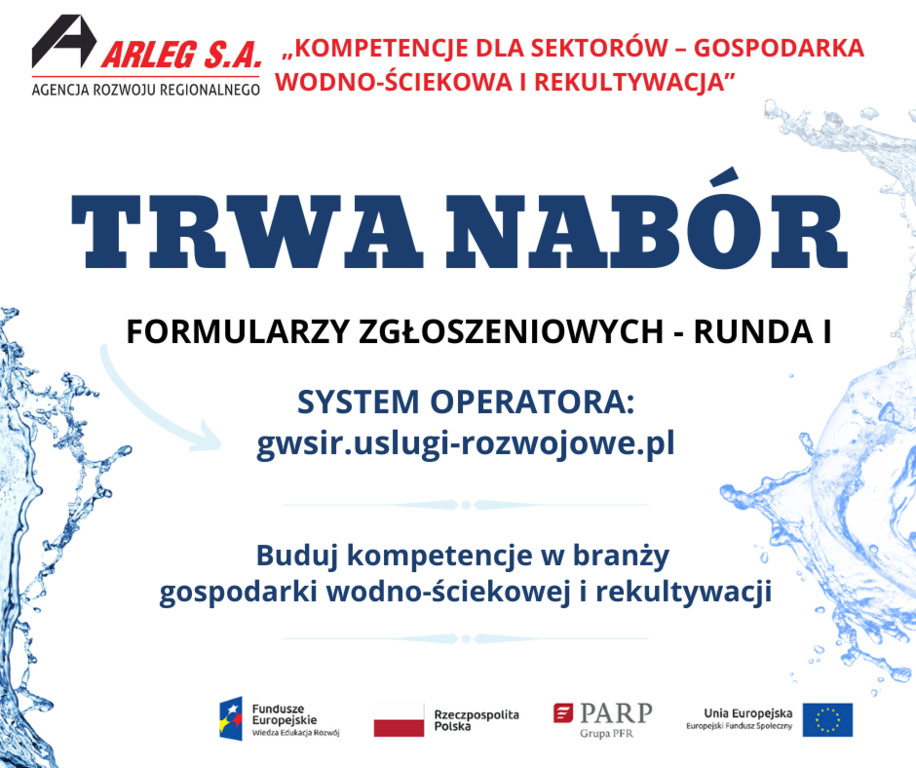 „Kompetencje dla sektorów – gospodarka wodno-ściekowa i rekultywacja” – RUNDA NR 1.