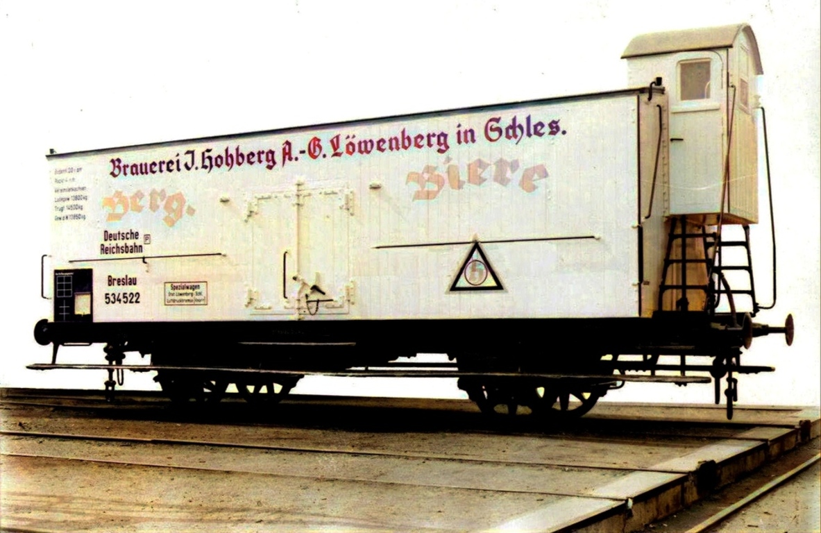 Na górnym zdjęciu wagon piwiarka browaru rodziny Hohberg w Lwówku Śląskim (d. Löwenberg in Schlesien)