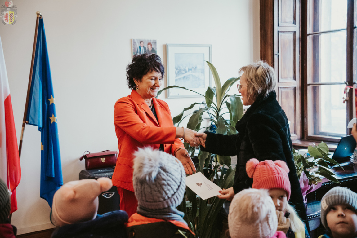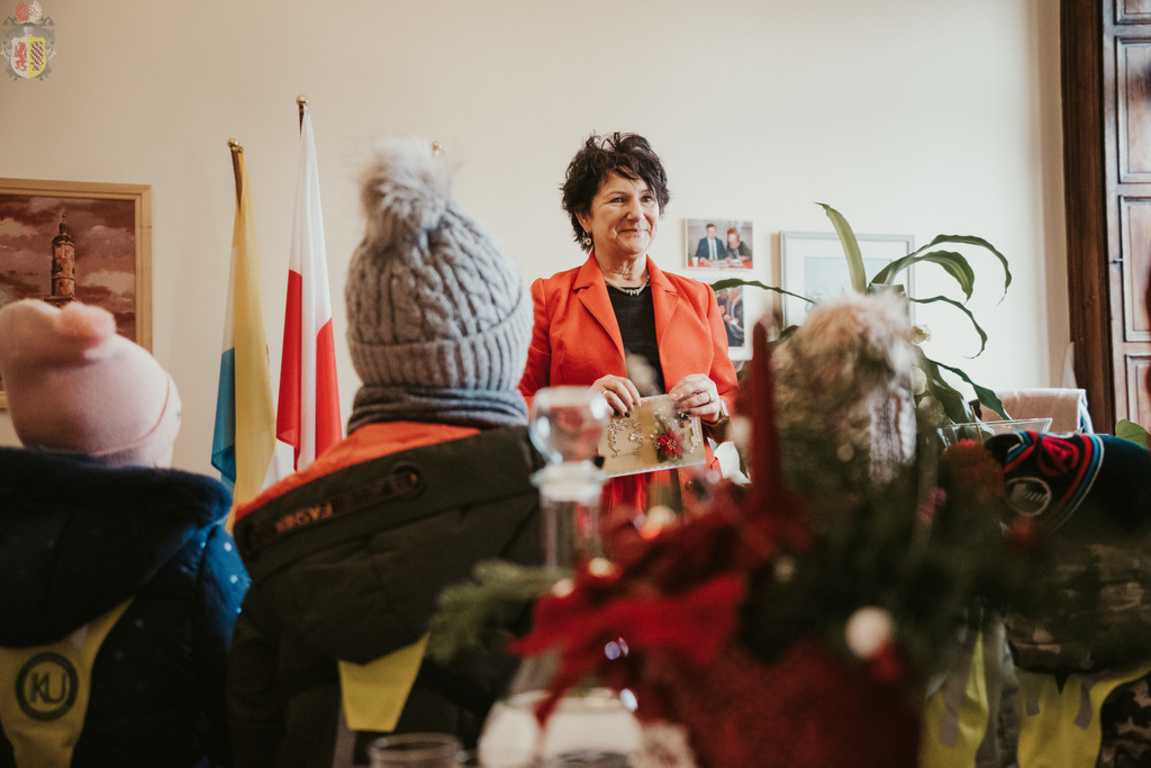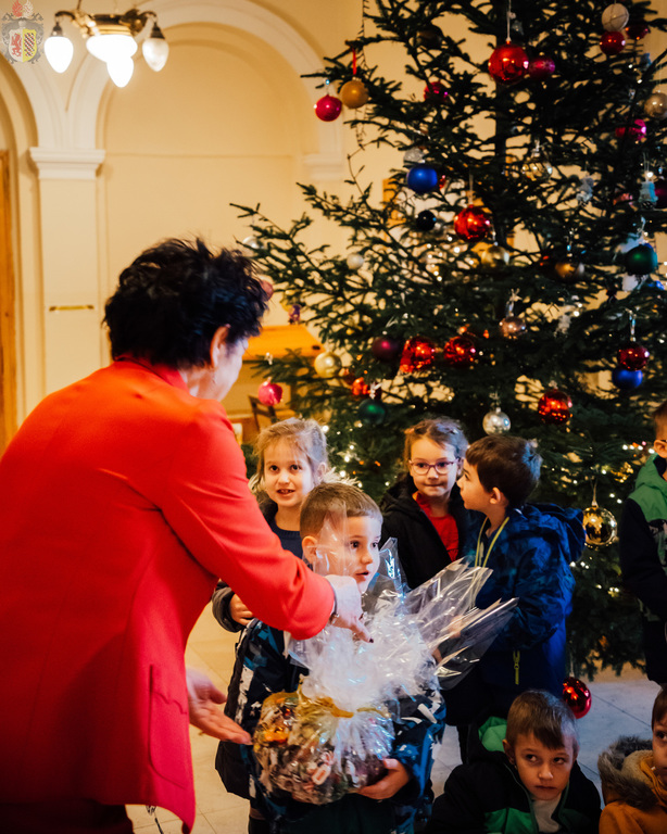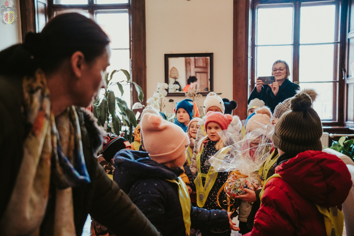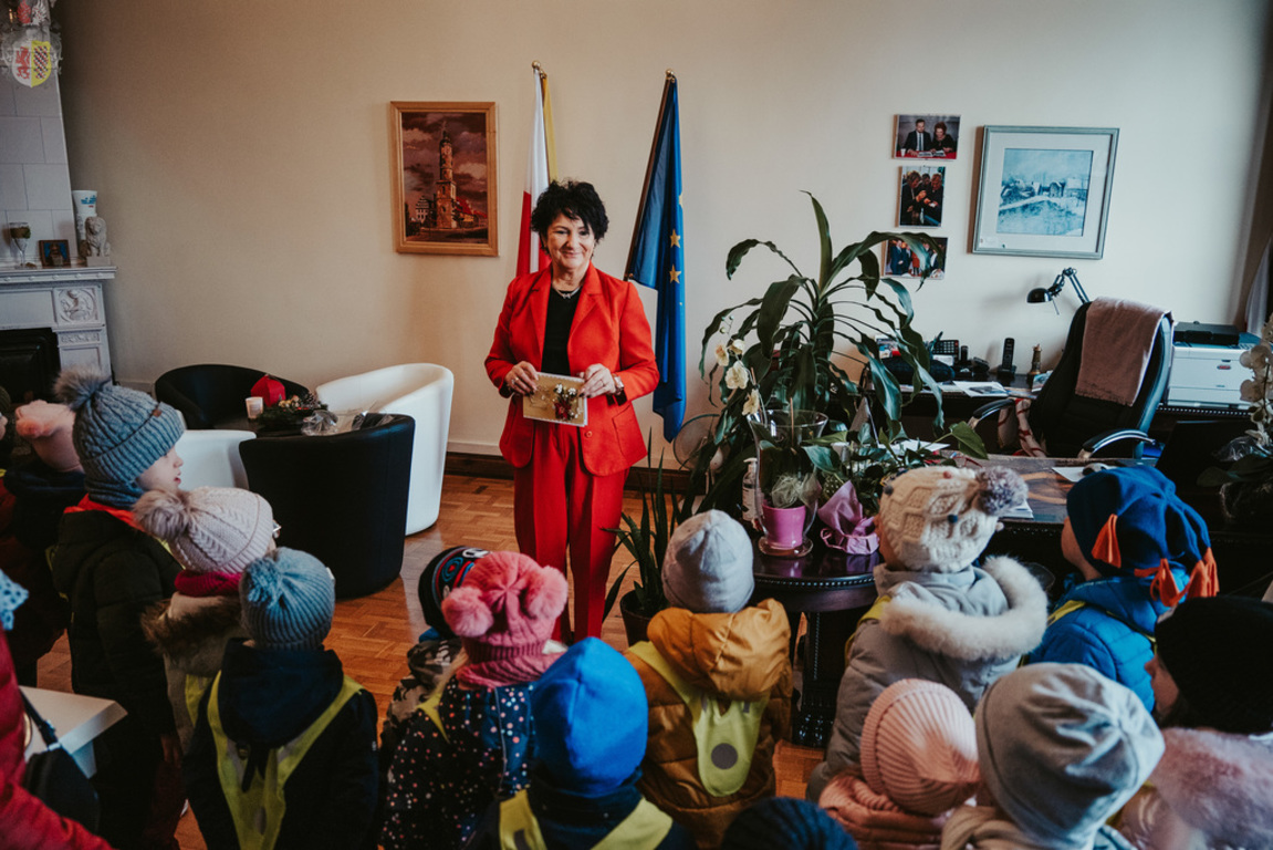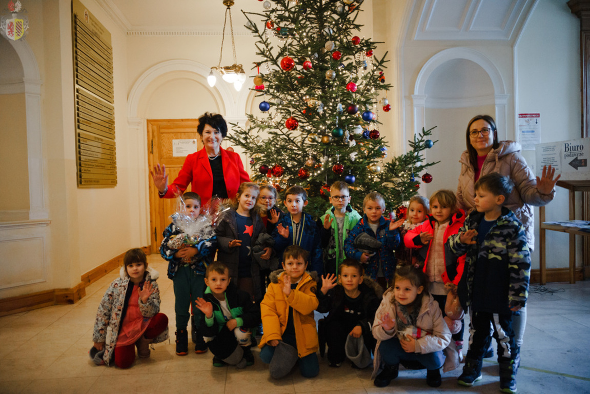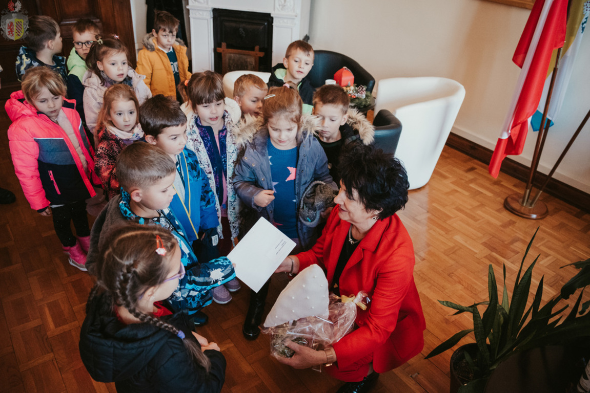 W dniu dzisiejszym do Urzędu Gminy i Miasta Lwówek Śląski przybyli wyjątkowi goście. Pani Burmistrz Mariola Szczęsna serdecznie powitała dzieci z naszych przedszkoli przybyłych ze świątecznymi bożonarodzeniowymi życzeniami. Dzieci złożyły również życzenia dla radnych na ręce Przewodniczącego Rady Miejskiej w Lwówku Śląskim. Wraz z wizytą przedszkolaków w urzędzie zapanował świąteczny nastrój, za co bardzo dziękujemy zarówno dzieciom jak i ich wychowawcom.