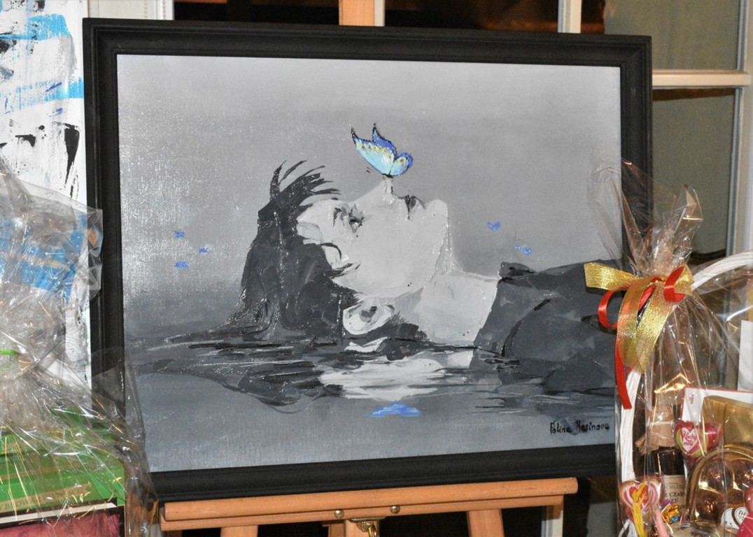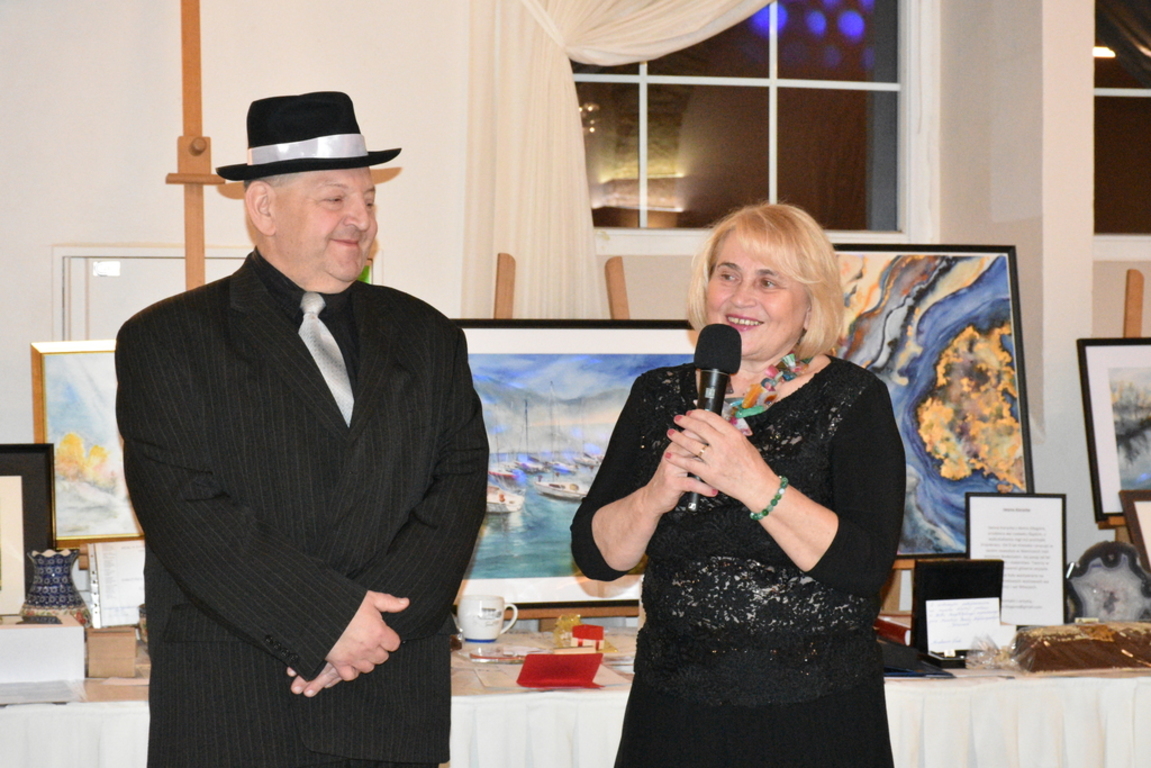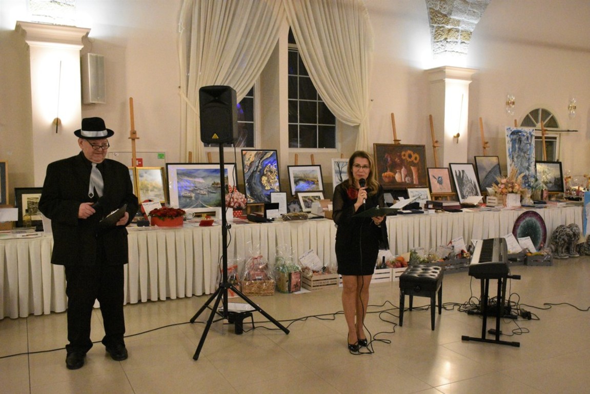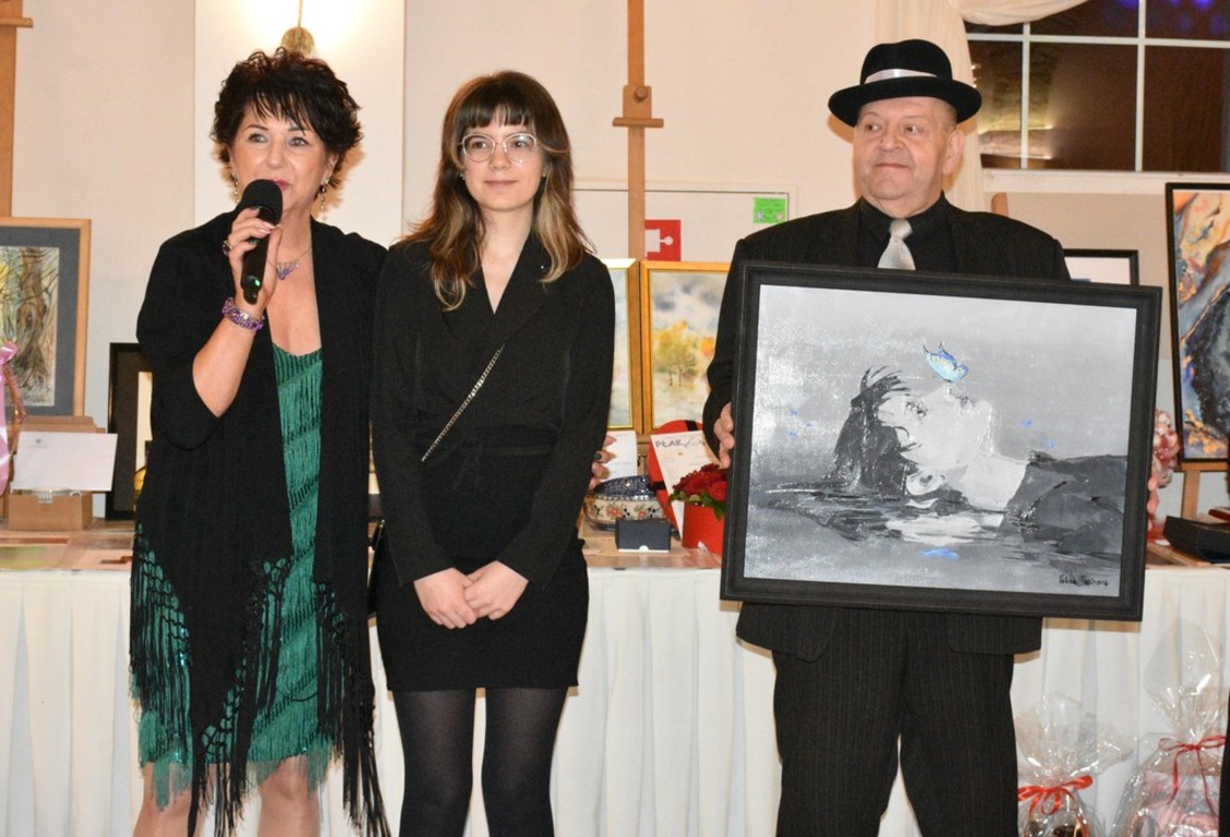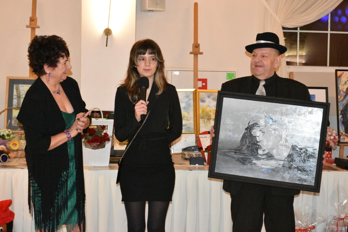 Wystąpienie Pani Burmistrz Marioli Szczęsnej, która podziękowała za wieloletni trud i poświęcenie osób związanych z Fundacją oraz zaprezentowała obraz wykonany na licytację przez Polinę Kosinovą z Białej Cerkwii k. Kijowa. Utalentowana, młoda kobieta jest studentką grafiki komputerowej. Na prośbę Pani Burmistrz wykonała wyjątkowe dzieło, które ukazuje ofiarę rosyjskiej agresji na Ukrainę. Motyl jest symbolem nieśmiertelnej duszy, która opuszcza ciało kolejnej przedwcześnie zmarłej, niewinnej istoty...