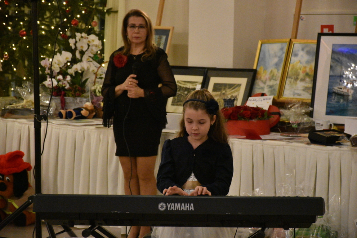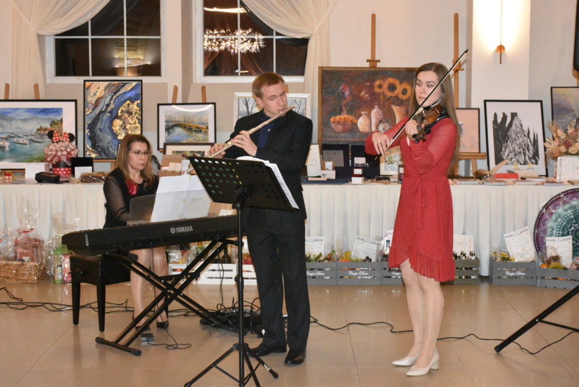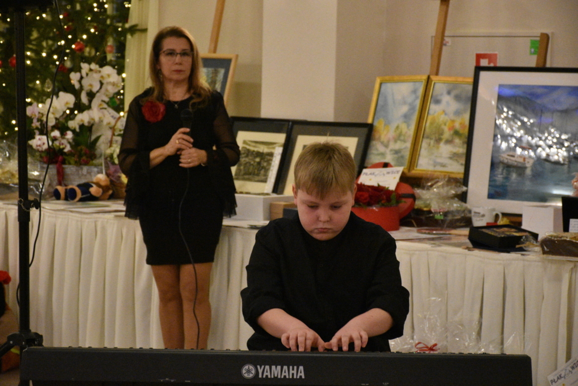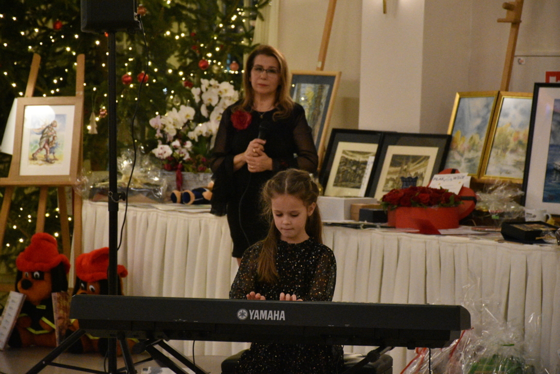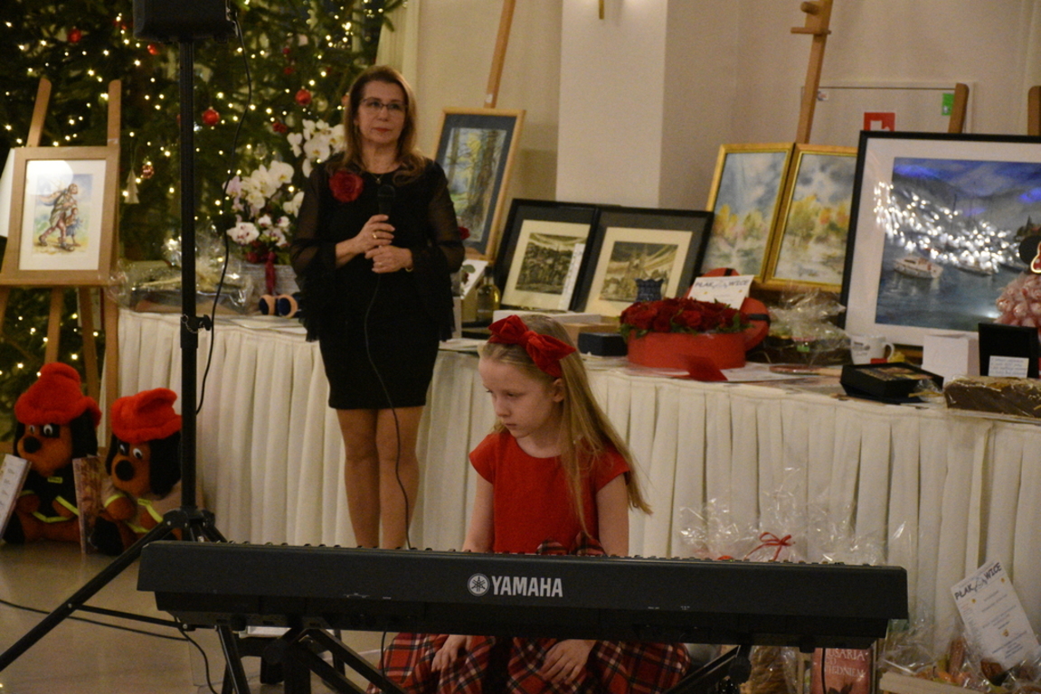 Wystąpienie Pani Burmistrz Marioli Szczęsnej, która podziękowała za wieloletni trud i poświęcenie osób związanych z Fundacją oraz zaprezentowała obraz wykonany na licytację przez Polinę Kosinovą z Białej Cerkwii k. Kijowa. Utalentowana, młoda kobieta jest studentką grafiki komputerowej. Na prośbę Pani Burmistrz wykonała wyjątkowe dzieło, które ukazuje ofiarę rosyjskiej agresji na Ukrainę. Motyl jest symbolem nieśmiertelnej duszy, która opuszcza ciało kolejnej przedwcześnie zmarłej, niewinnej istoty...