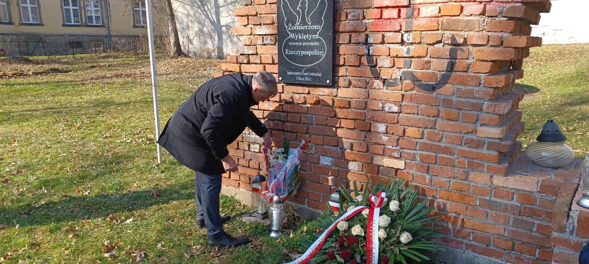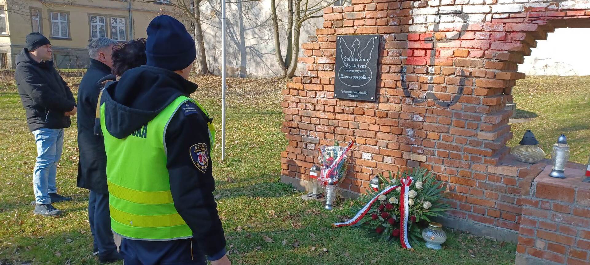 W środę 1 marca 2023 r. Burmistrz Gminy i Miasta Lwówek Śląski Mariola Szczęsna, Wiceburmistrz Lesław Krokosz, Inspektor ds. promocji i projektów unijnych Edyta Łęcka oraz Komendant Straży Miejskiej Krzysztof Siczek, złożyli wiązanki kwiatów przy Pomniku Żołnierzy Wyklętych, upamiętniającym członków antykomunistycznego i niepodległościowego podziemia.