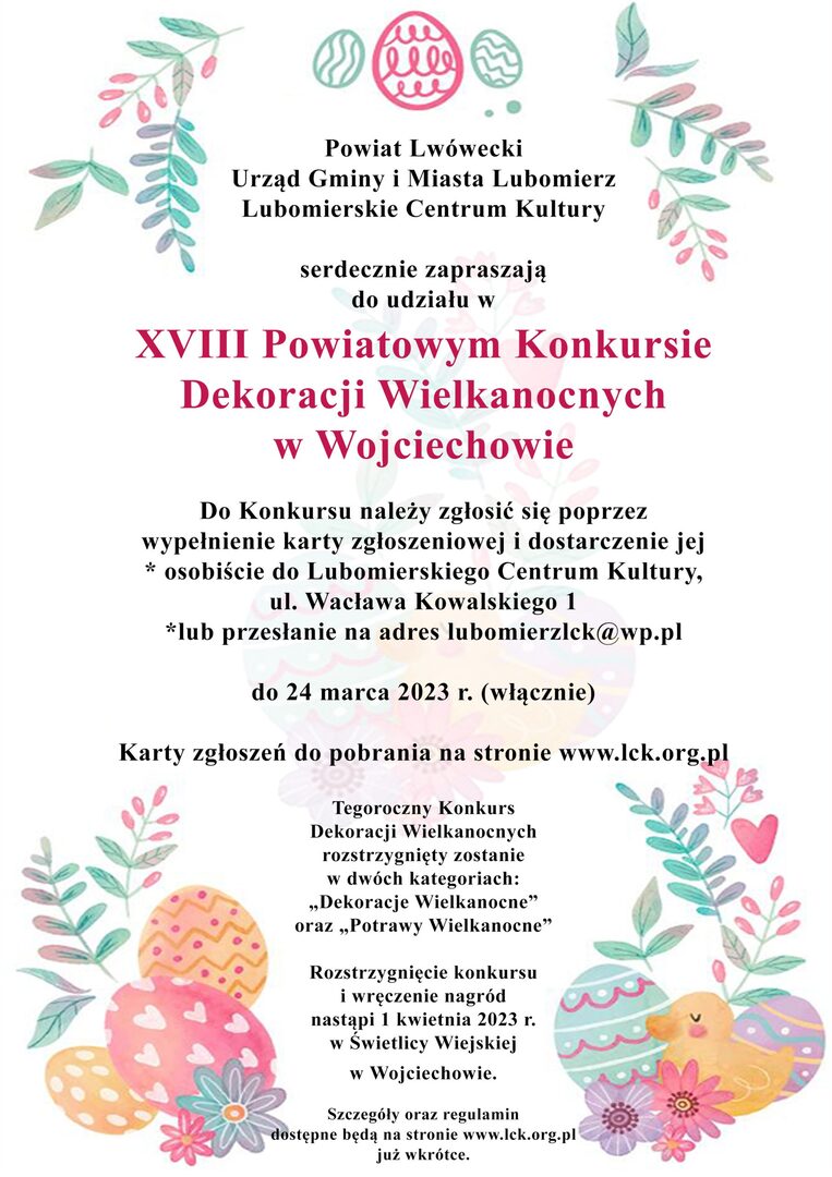 Rozstrzygnięcie konkursu i wręczenie nagród nastąpi 1 kwietnia 2023 r. w Świetlicy Wiejskiej w Wojciechowie.