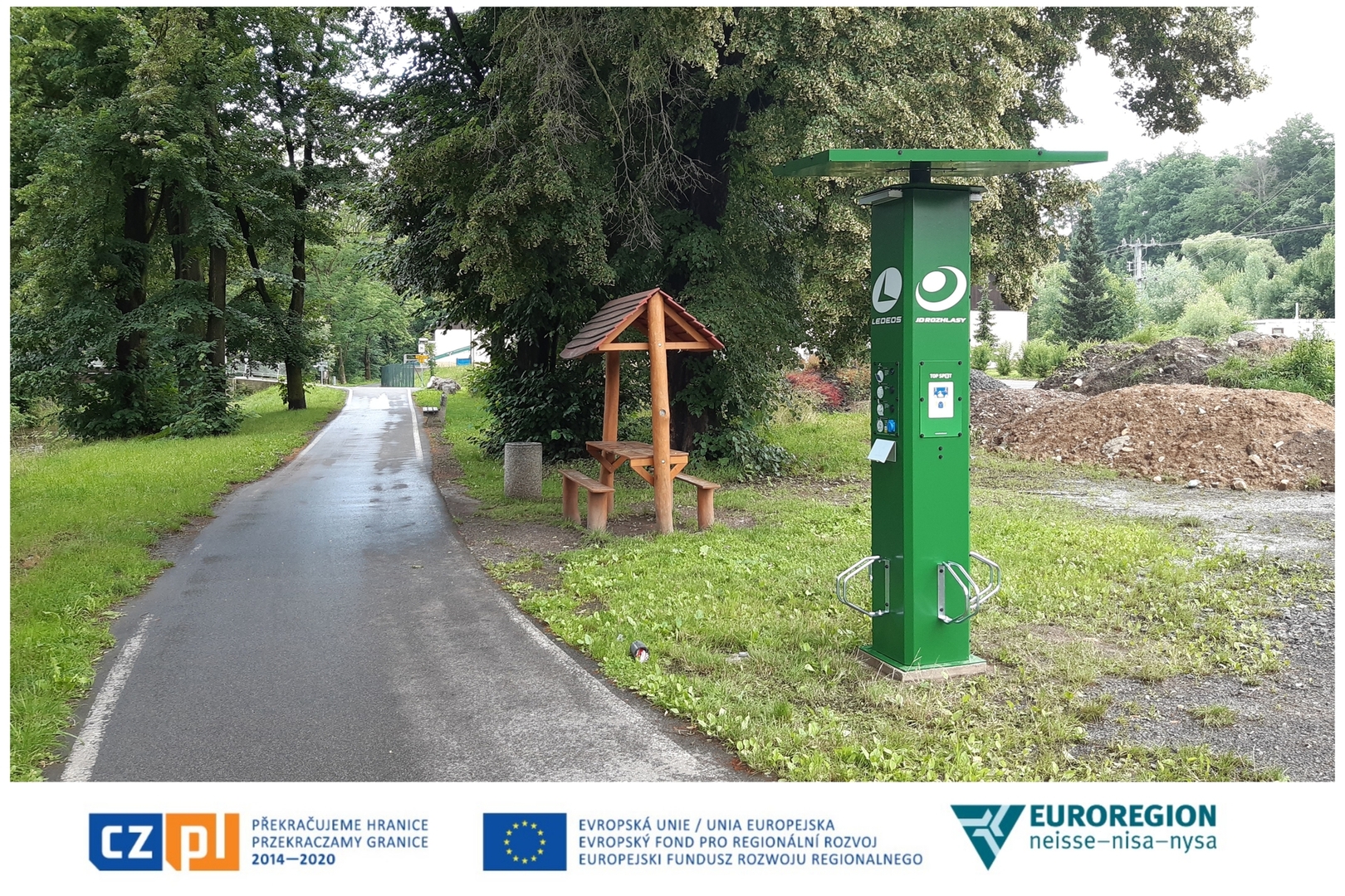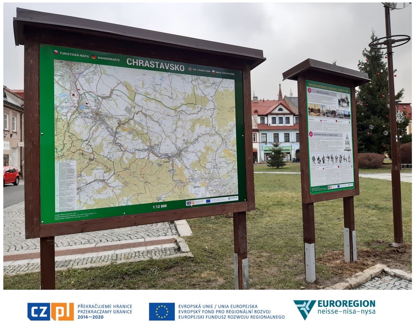 Partner projektu- Miasto Chrastava w ramach swoich działań zamontował tablice informacyjne, które zlokalizowane są w pobliżu miejsc turystycznych i zawierają tekst o danej atrakcji w 4 językach: polskim, czeskim, niemieckim, angielskim. Ponadto miasto Chrastava zbudowało schronisko na Ovčí horze oraz stację ładowania i obsługi rowerów elektrycznych na ścieżce rowerowej Odra-Nysa, która przebiega przez część miasta zwaną Paradise.