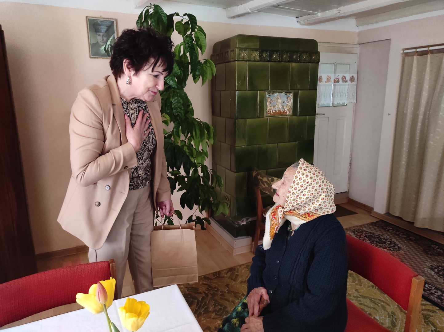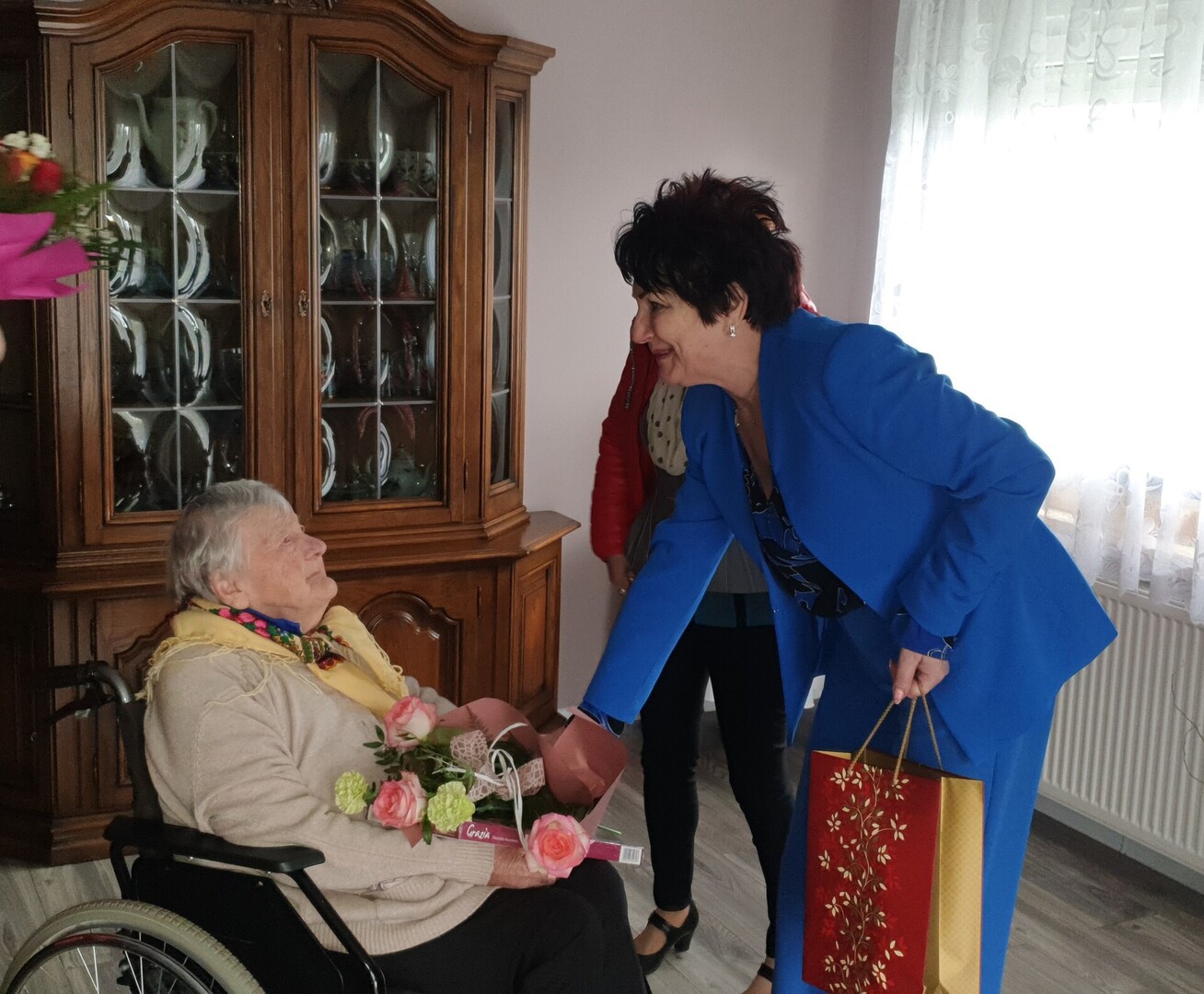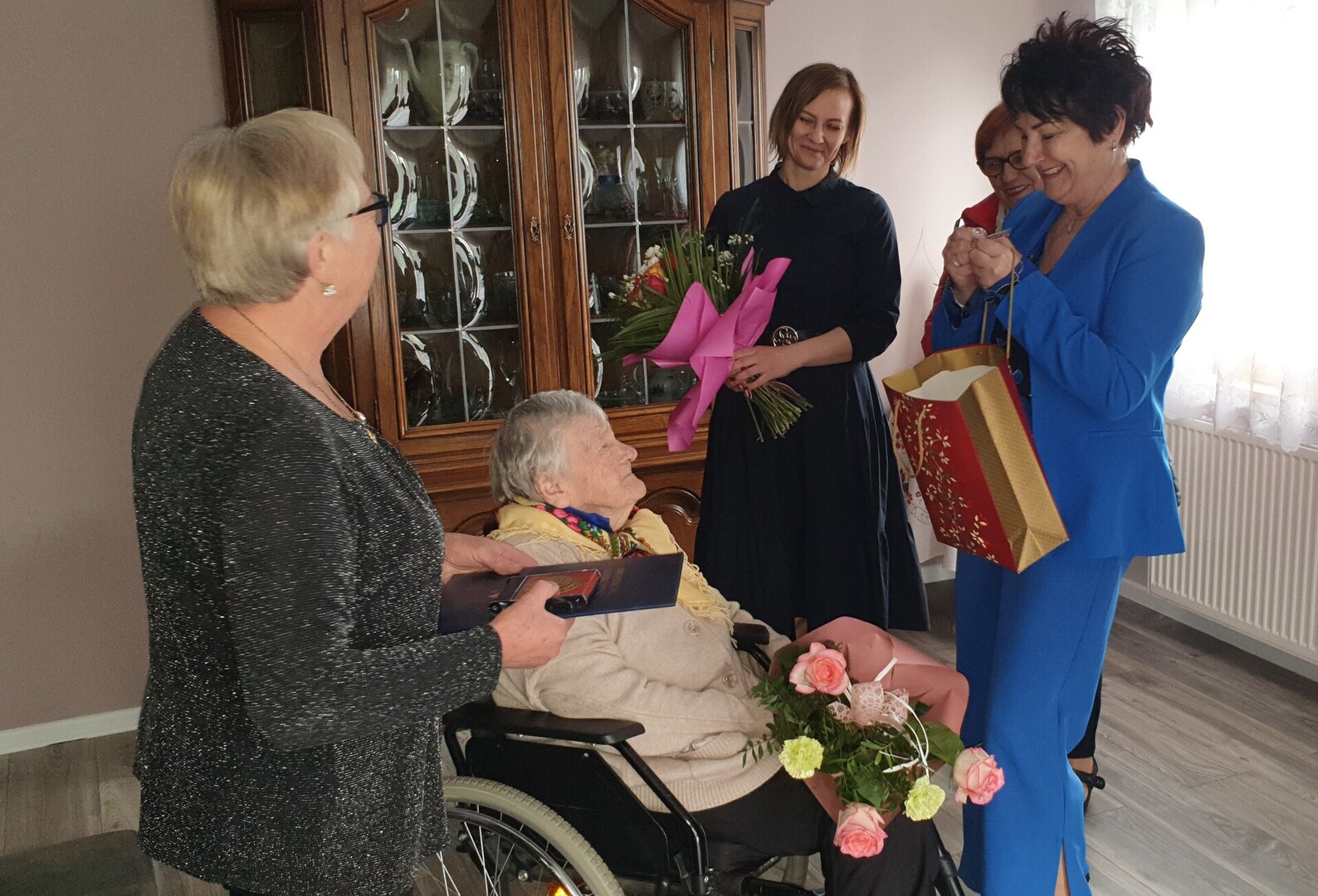 Pięknego jubileuszu doczekała się również pani Józefa Mieszczanowicz, która w Sobocie świętowała swoje setne urodziny. Z tej okazji, jubilatkę odwiedziły: Pani Burmistrz, Pani Kierownik USC oraz Pani Sołtys Ewa Malińska.
