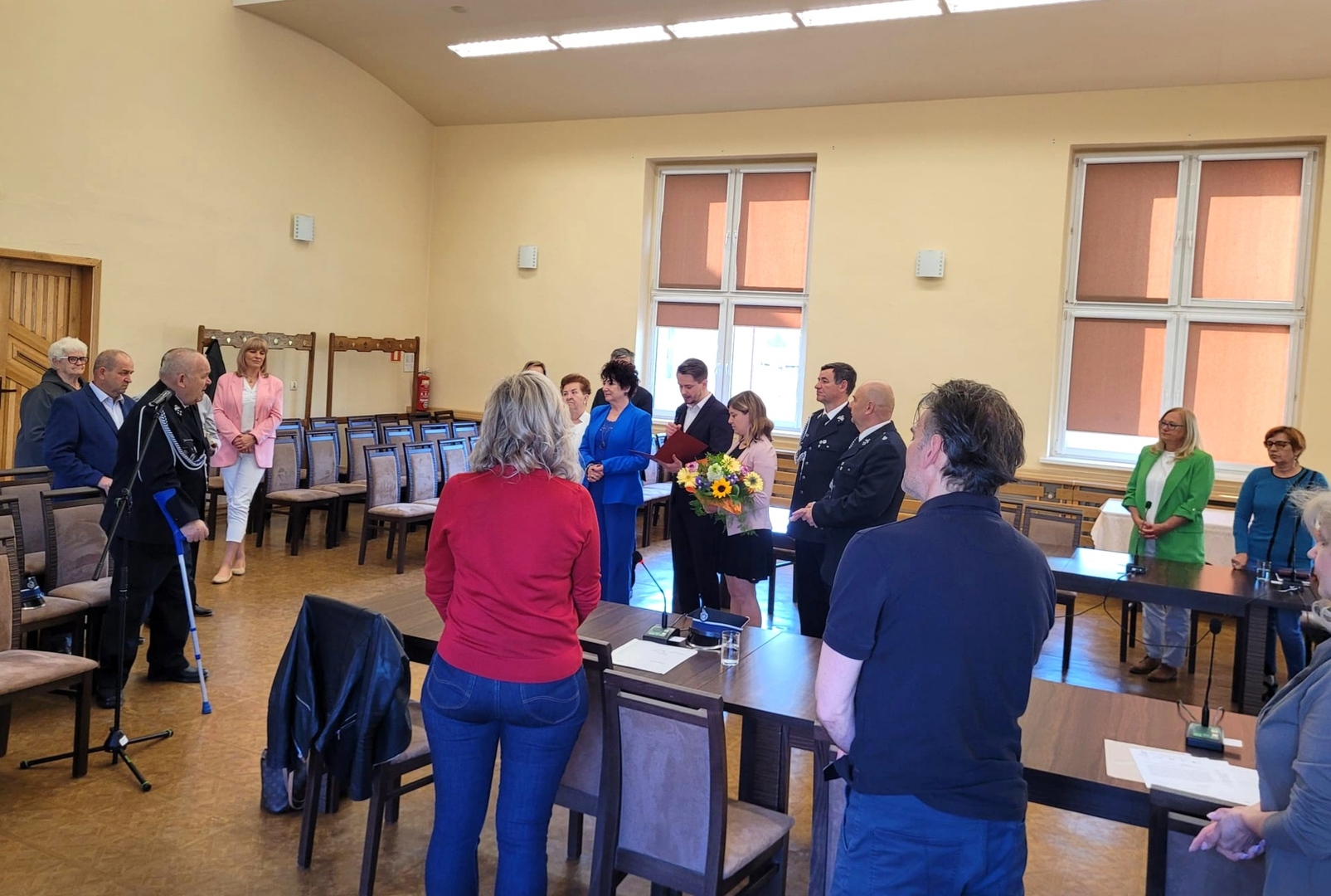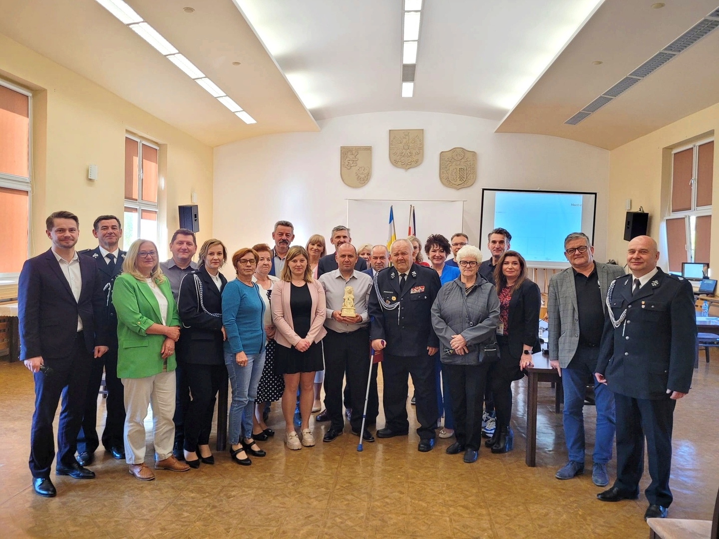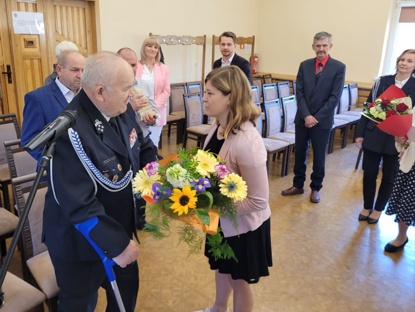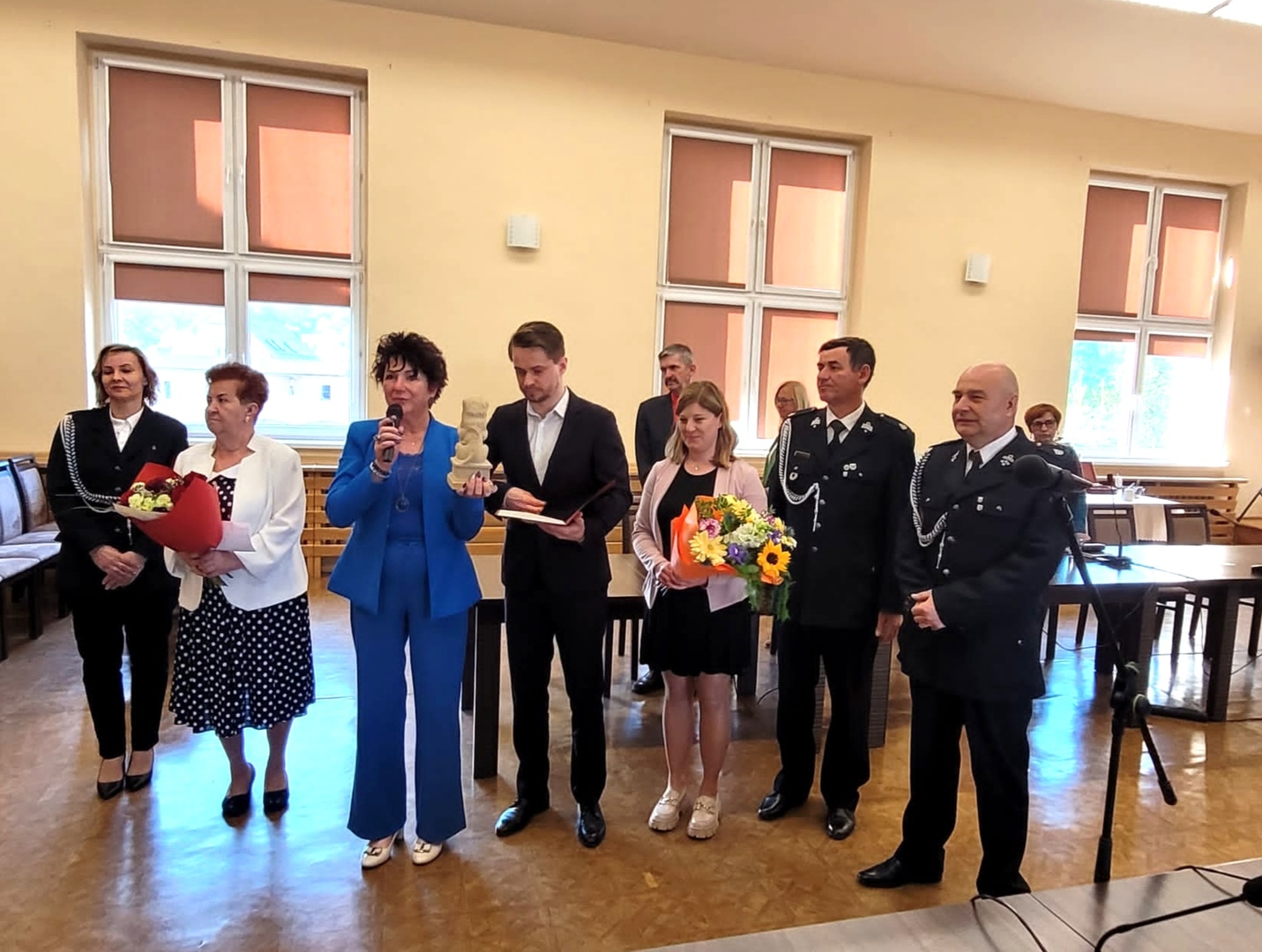 Zaszczytne wyróżnienie wręczyła w piątek 12 maja Pani Burmistrz Mariola Szczęsna, podczas LXVII Sesja Rady Miejskiej w Lwówku Śląskim. Gratulacje i życzenia złożyli również: Przewodniczący Rady Miejskiej Dawid Kobiałka, radny Franciszek Pawłowicz pełniący jednocześnie funkcję prezesa zarządu Oddziału Miejsko-Gminnego Związku Ochotniczych Straży Pożarnych, radny Tadeusz Koblak, Komendant Miejsko-Gminnego Związku OSP Artur Drozdowicz, Pani Paulina Sztuba z Wydziału Spraw Obywatelskich, Pani Stanisława Buganik sołtys ze Zbylutowa oraz kierownik USC Dominika Rzeźwicka, tym razem w dodatkowej roli przedstawiciela OSP Zbylutów.