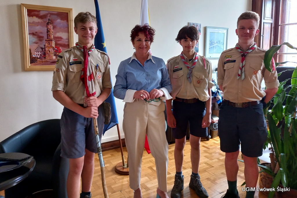W realizacji zadania pomogli Pani Mariola Szczęsna Burmistrz Gminy i Miasta Lwówek Śląski oraz Pan Lesław Krokosz Zastępca Burmistrza Gminy i Miasta Lwówek Śląski. Po krótkiej rozmowie z Panią Burmistrz, Pan Zastępca oprowadził skautów po siedzibie urzędu i opowiedział o historii pałacu, dawnej siedzibie Hohenzollernów.